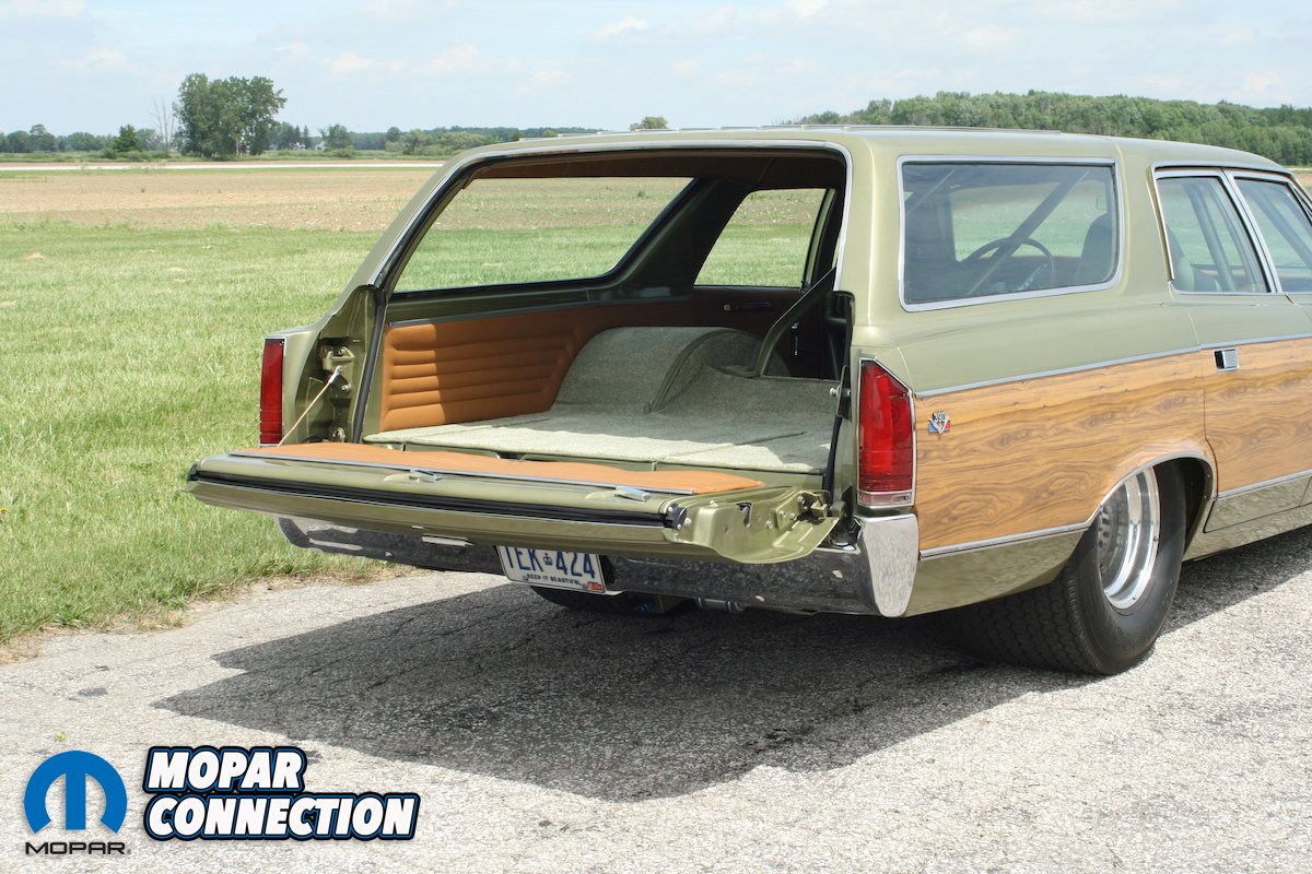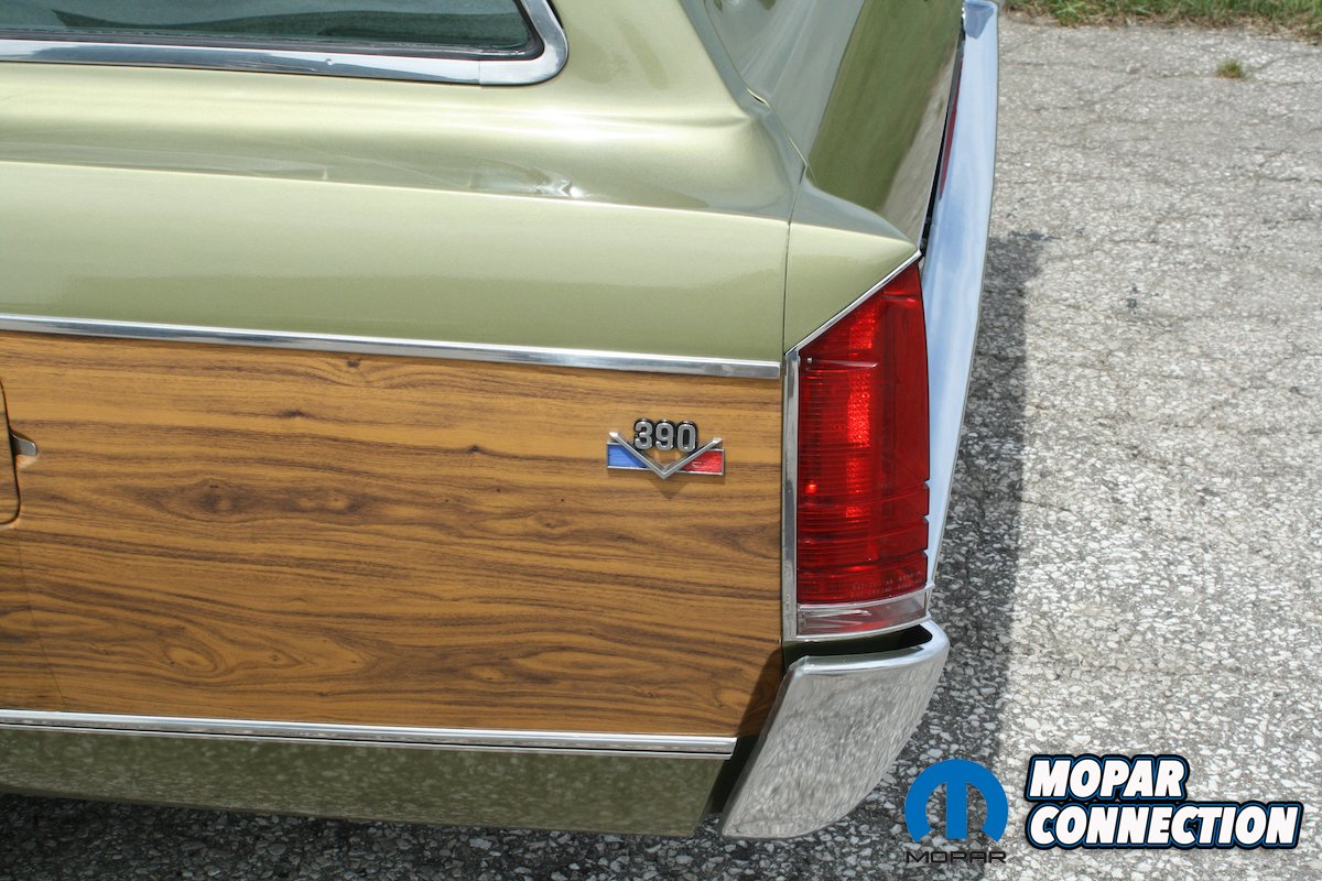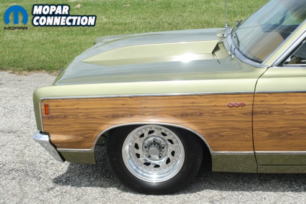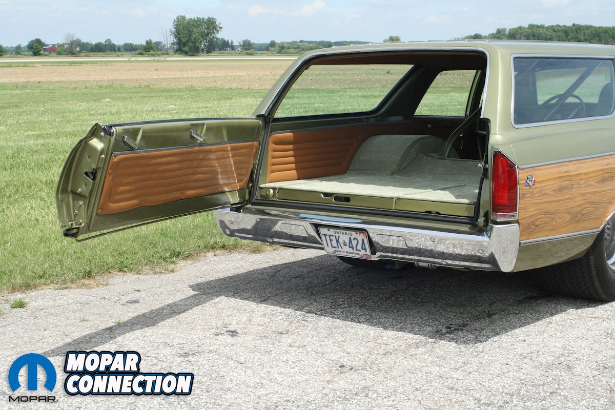 All the replacement floors, body work, body prep work, and final paint were performed at Don’s home shop. Helping with painting duties was George DaSilva, who transformed the wagon to a fresh factory color of Willow Green Metallic with single-stage paint. Since the original vinyl woodgrain was no longer available, A1 Auto Detailing of Hagersville, Ontario, recreated the woodgrain using vinyl wrap material. The chrome and stainless are all O.E.