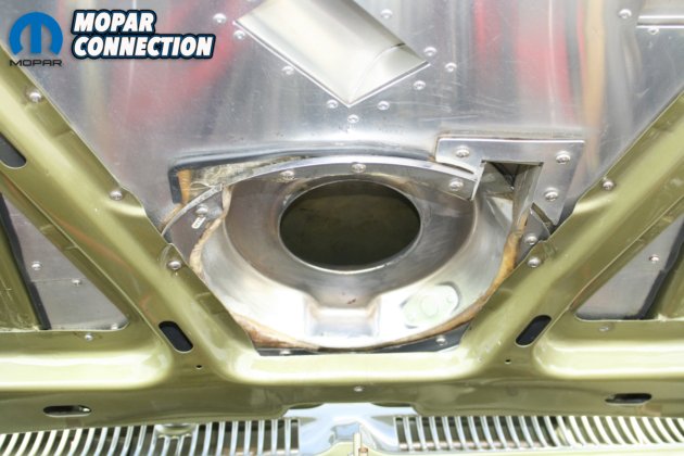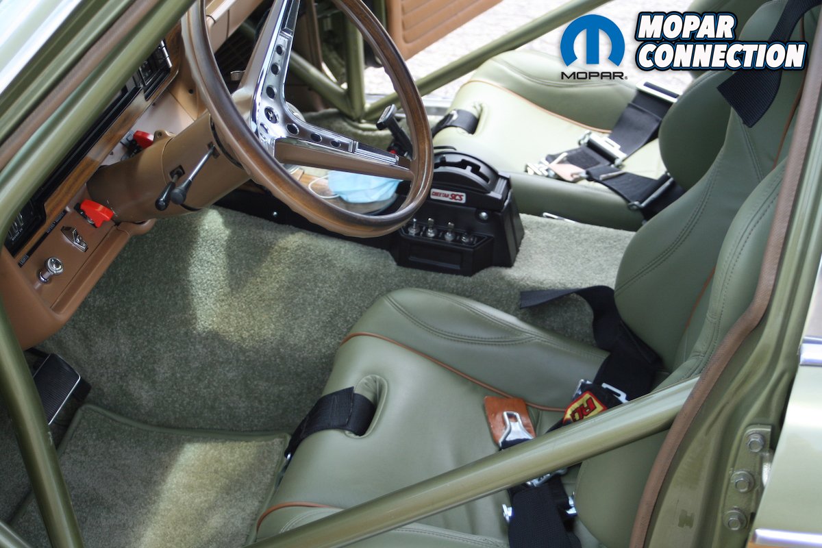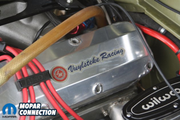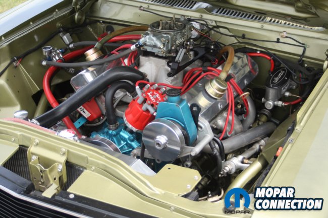 The exhaust gases go through a hand-built Hedman Husler U-Build kit for big-block Mopars. There is a 2” primary that goes to a 4” collector that flows into the 3” stainless custom exhaust into Flowmaster 40 series mufflers. Then finally, the gases exit out the side in a NASCAR-style stock car exhaust before the rear tires. The fabrication work on the exhaust was performed by DS Auto in Delhi, Ontario.