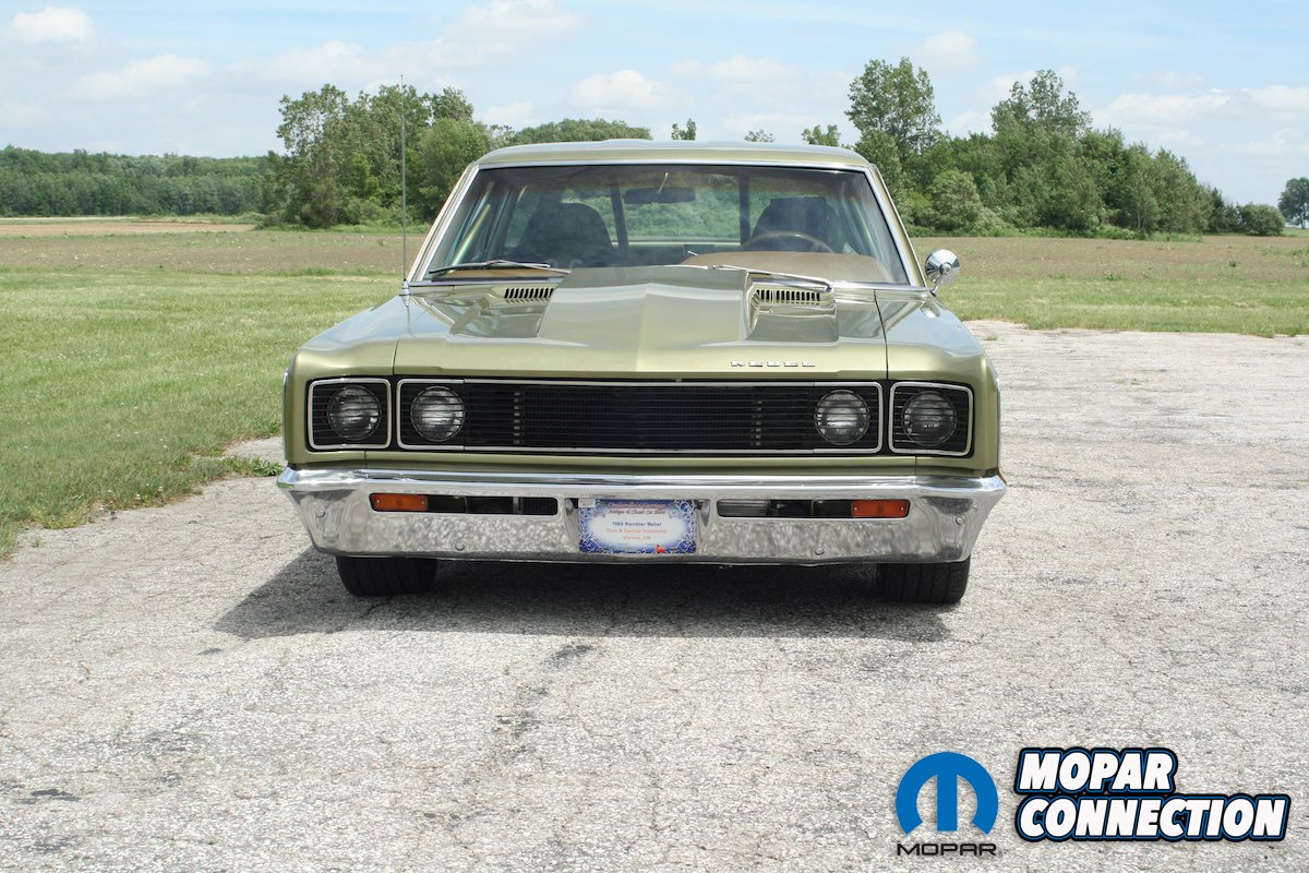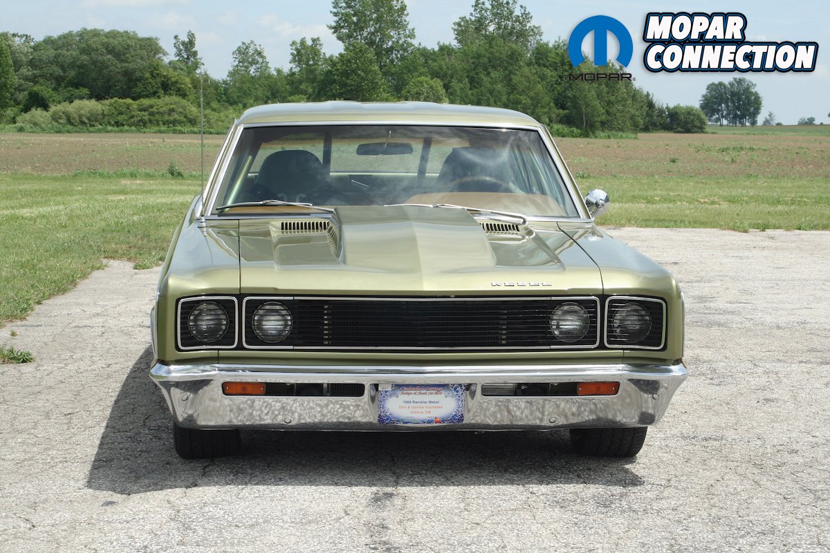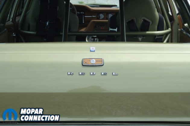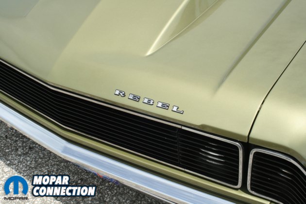 Since the quarter panels and fenders were still in good condition, there was no need to replace them. The roof rack was removed, and the holes were filled in to give it a more streamlined look. Don’s brother Tim notched the rocker panels to accommodate the NASCAR-style exhaust. Tim also did a one-of-a-kind styrene grill to simulate a hideaway headlight effect. A 1969 Chevy Camaro steel hood cowl was grafted onto the Rebel hood. The cowl is functional and is fully sealed to the carburetor.