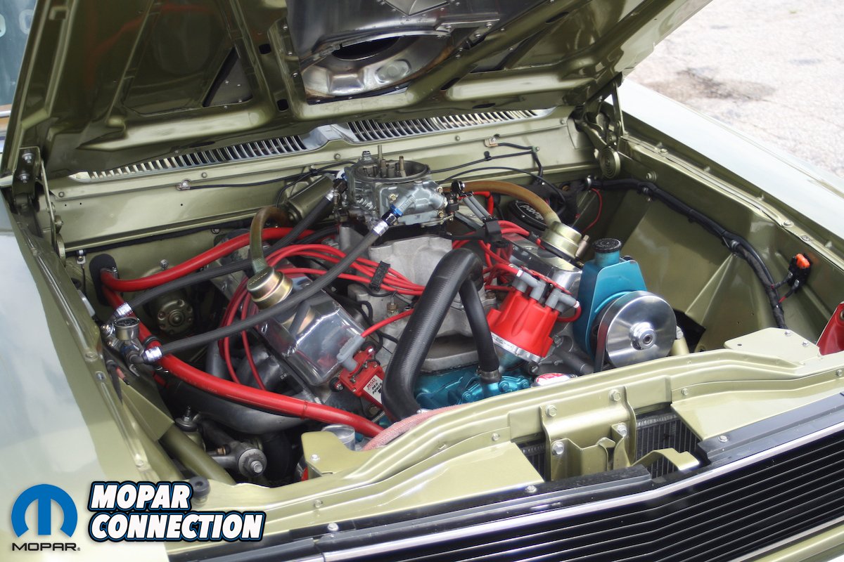 To power this mean machine, Don replaced the old 401 mill with an AMC 390 cu in short block stroker that was stretched to 433 cu in. Aftermarket aluminum Indy 401-1 heads have been ported and shaped to 58 cc by Konigshofer Brothers. A ‘71-74 forged 401 crank was milled and balanced for 6” rods. Attached to those rods are forged pistons with full floating pins. It has a Reed solid roller cam (.720 lift/269 duration on the intake and .277 on the exhaust @ .050) with Johnson roller lifters and 3/8 Indy 2-piece push rods.