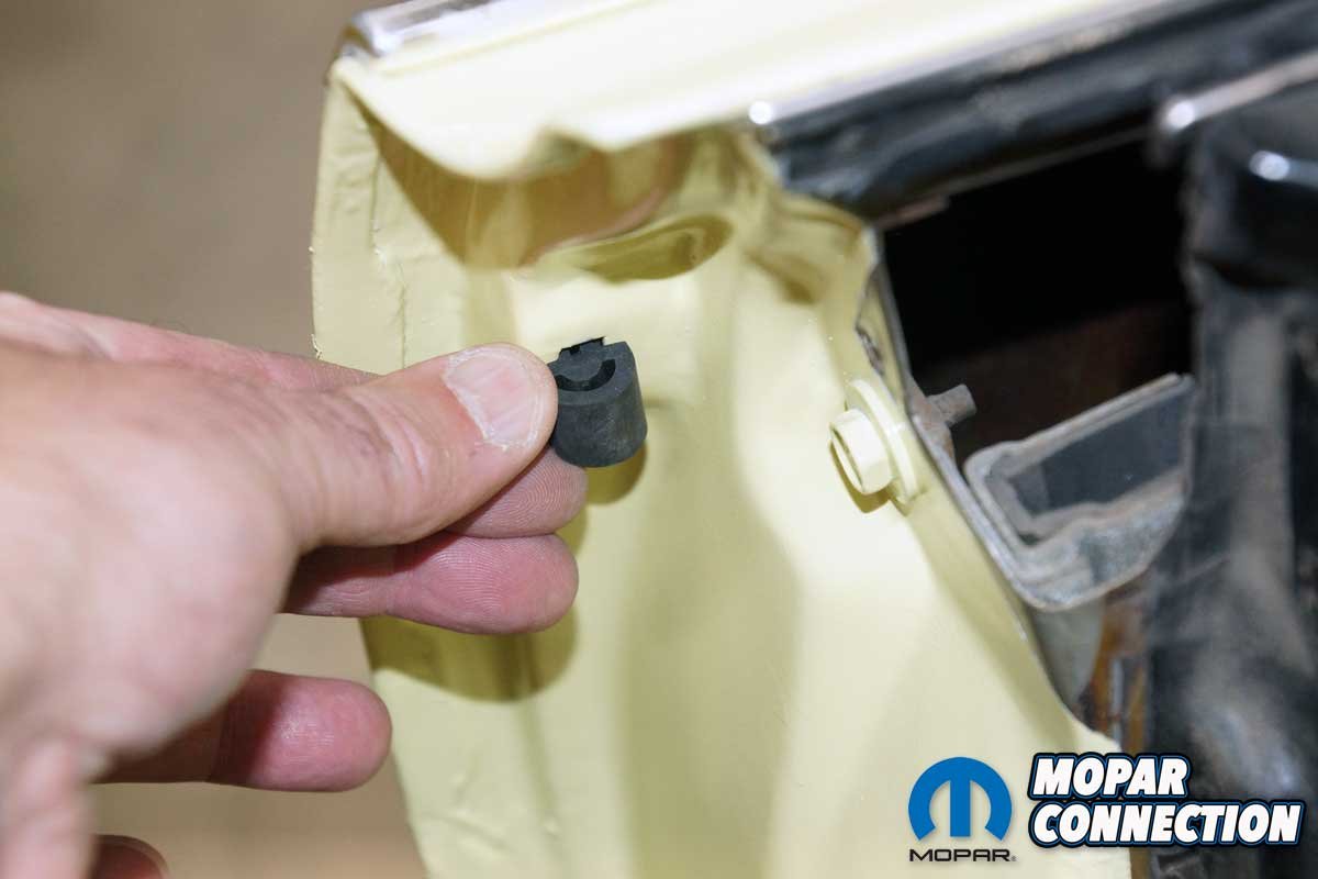 Although a door jamb seems like a simple area to repaint and install the new Year One parts, many pieces had to be removed to prepare for paint. First, on the passenger’s side jamb, the door striker and door sill screws were easily unthreaded and set aside along with the door sill plate. Afterward, we pulled the door jamb pillar seal screws and seal. Additionally, we removed the two rubber bumpers from the door.