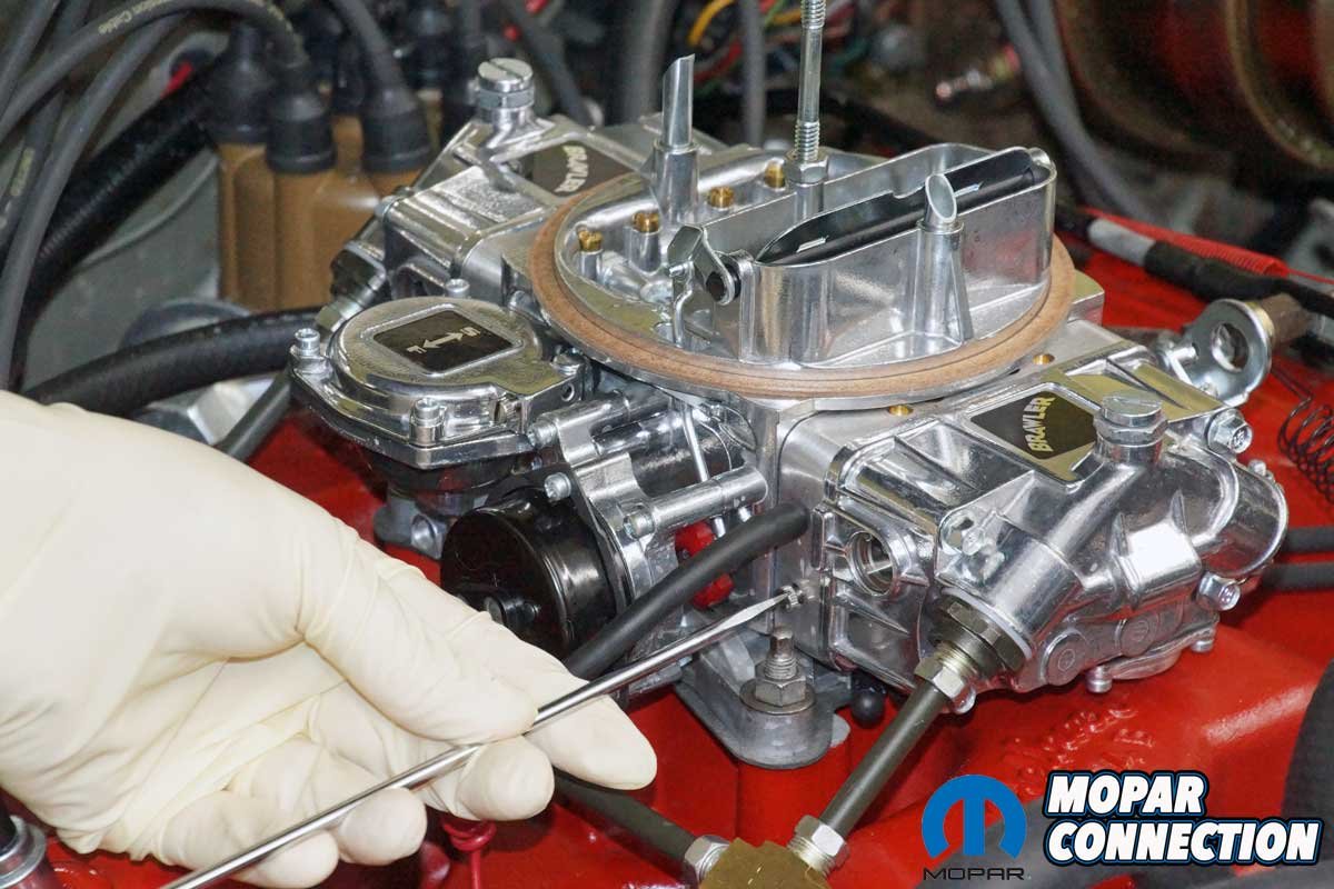 Above Left: The last step to tuning the carburetor was adjusting the four-corner idle screws. We had already checked and changed the float levels, jets, discharge nozzles, accelerator pump cams, secondary vacuum actuation, power valves, choke, and air bleeds. Above Right: The Brawler fits comfortably atop the Edelbrock LD4B manifold and under a factory air cleaner assembly.