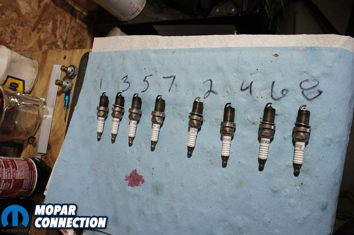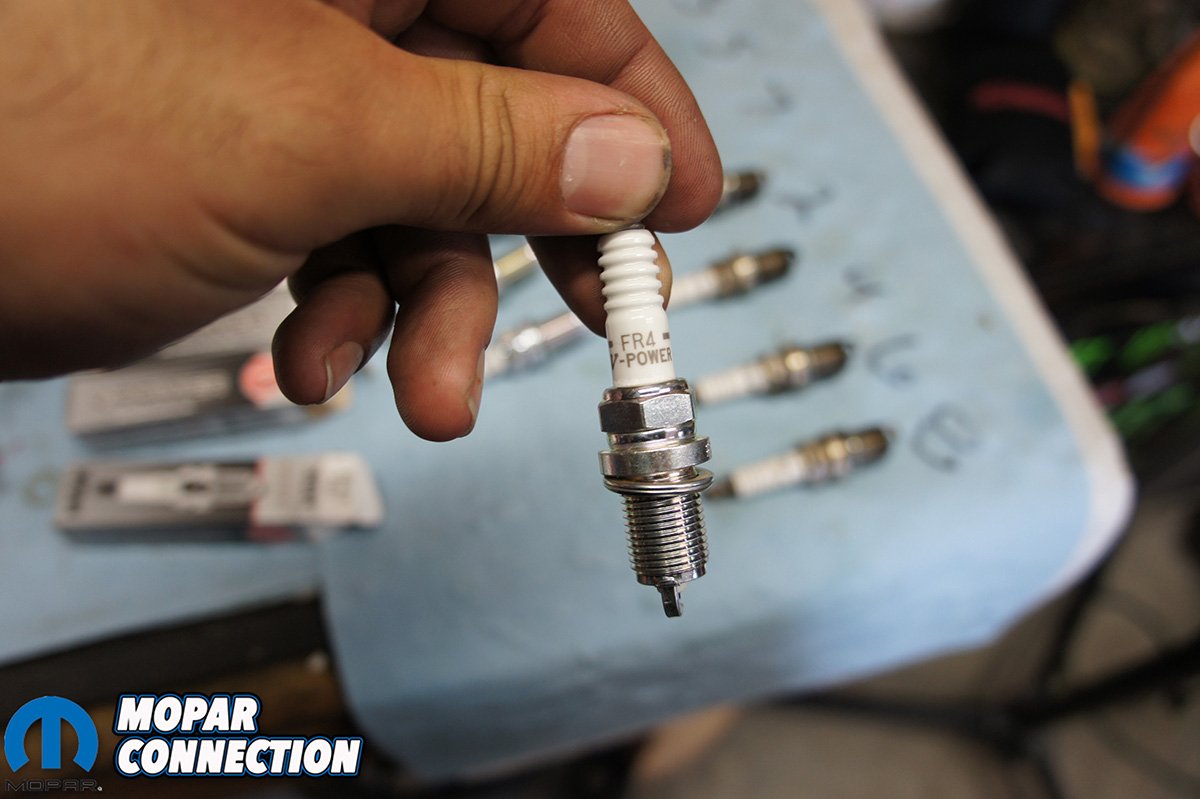 Above: Before we got too far in, we removed the old plugs and installed new NGK FR4 plugs.