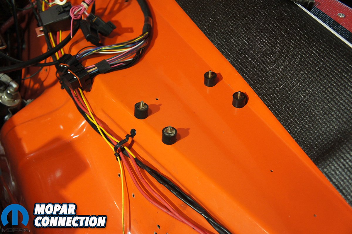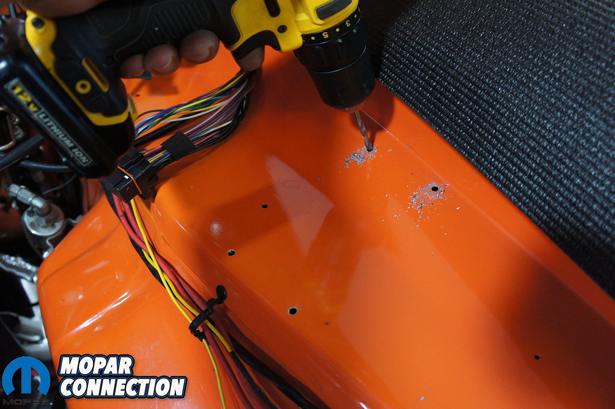 Above: We marked where to drill the holes for the MSD rubber mounts. Since the ECU was on the fender we decided to mount the relays there too.