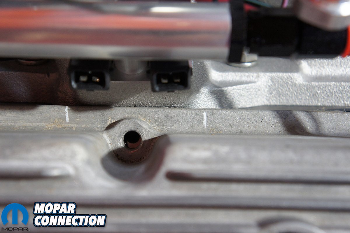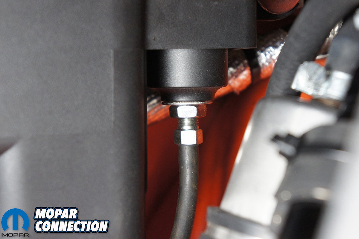 If you refer to Edelbrock’s sump diagram on the front page of the directions, it will show you how the fuel hoses and filters need routed. We suggest mounting your fuel filter(s) first and then cut your hoses to the correct lengths. Since our manifold wasn’t on yet we installed the fuel line from the mechanical pump and left the line off from the high pressure fuel filter to the manifold.