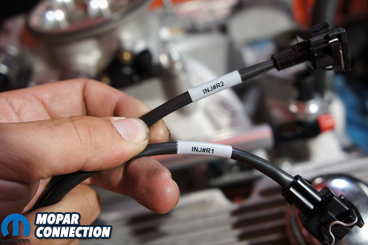 Above left: The antenna magnetic base comes with plenty of cable for multiple mounting locations. Above right: Every plug on Edelbrock’s Pro-Flo 3 EFI wiring harness is labeled for easy installation.