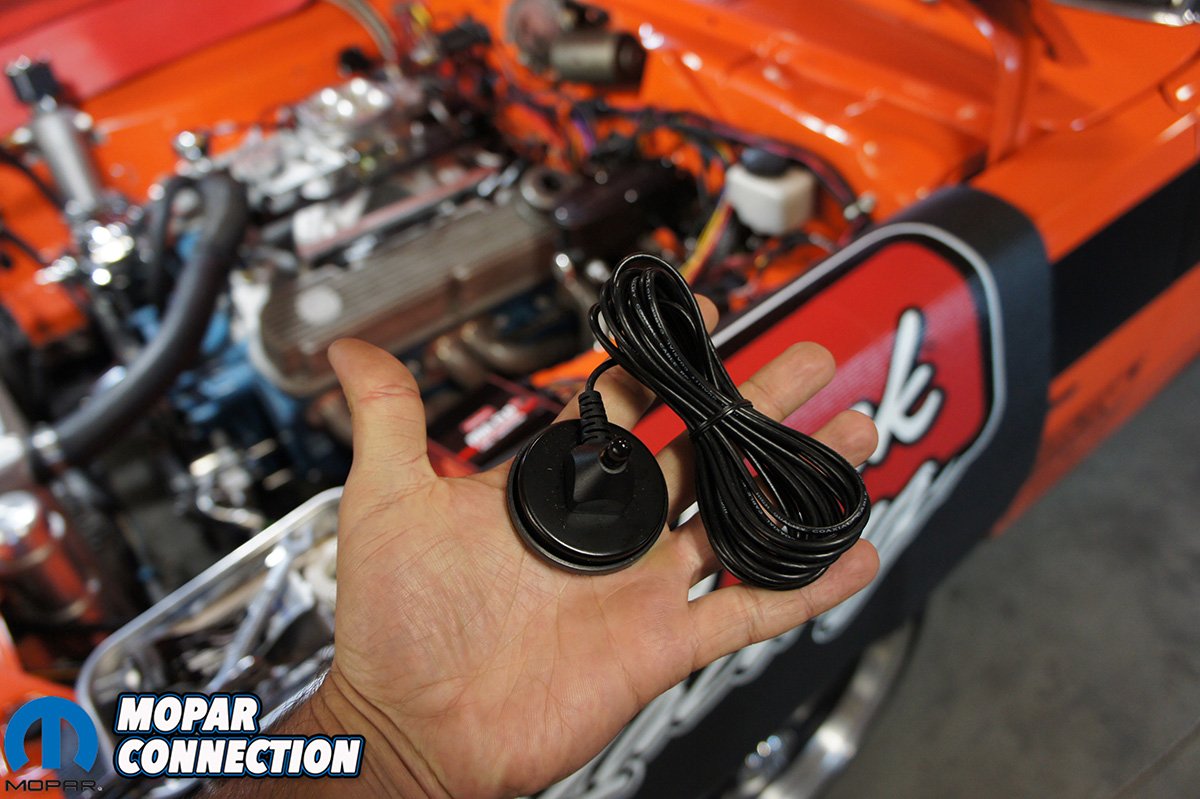 With the intake installed, all the wiring hooked up and battery reconnected we were ready to fire up the engine. Be sure the tablet or your phone is fully charged before starting the setup. As we mentioned earlier Edelbrock uses the latest Bluetooth technology to allow you to place the tablet or phone anywhere inside the vehicle. We positioned the magnetic antenna under the dash below the radio.