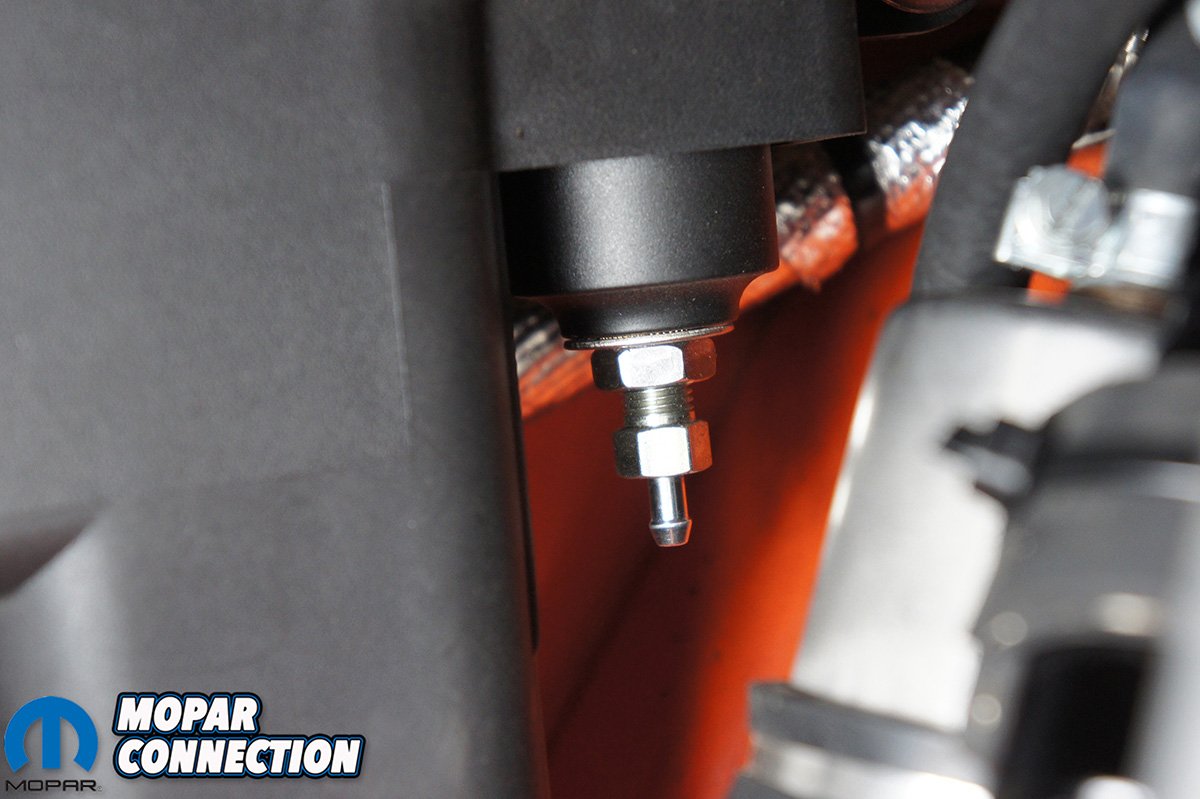 The plastic 5/16” fuel vent tube will need rerouted to the fuel tank. Its located directly behind the vacuum fitting. We temporarily ran a fuel grade hose to our catch can for temporary use. When properly routed to the fuel tank make sure the tank itself is still vented. If not the unit can over pressurize cause many different issues.