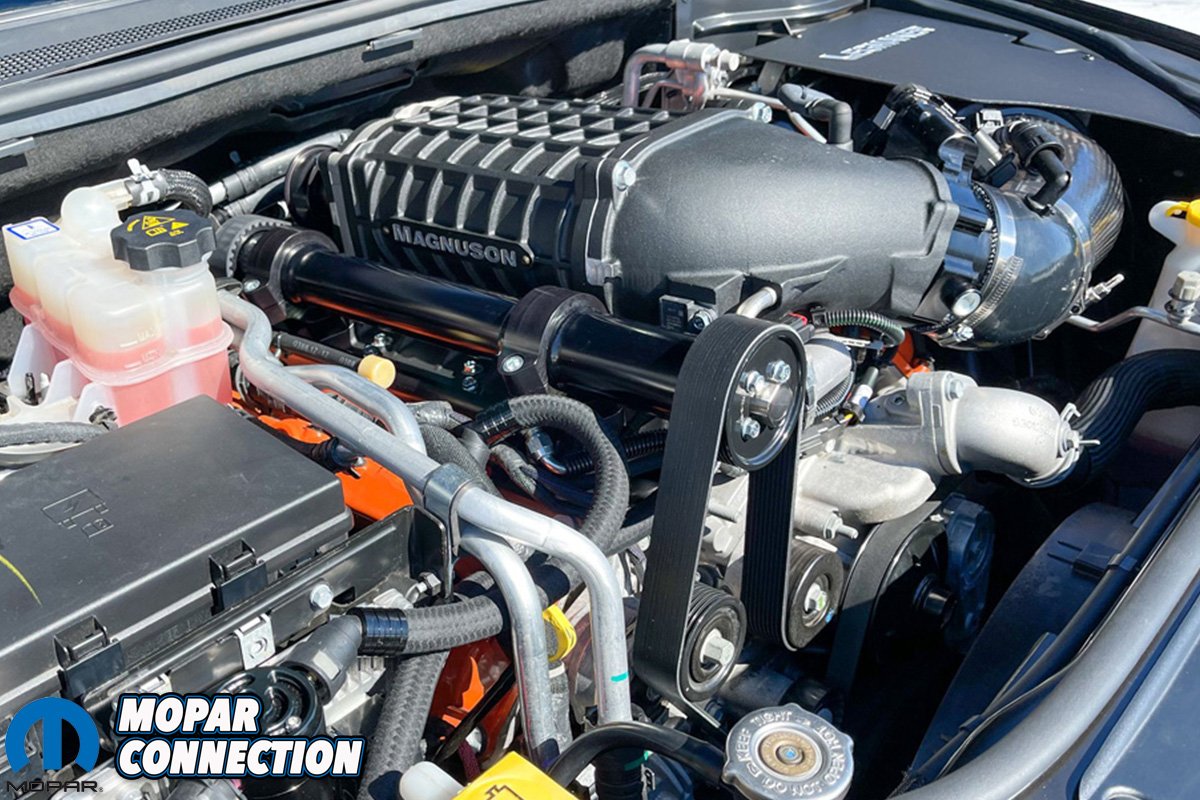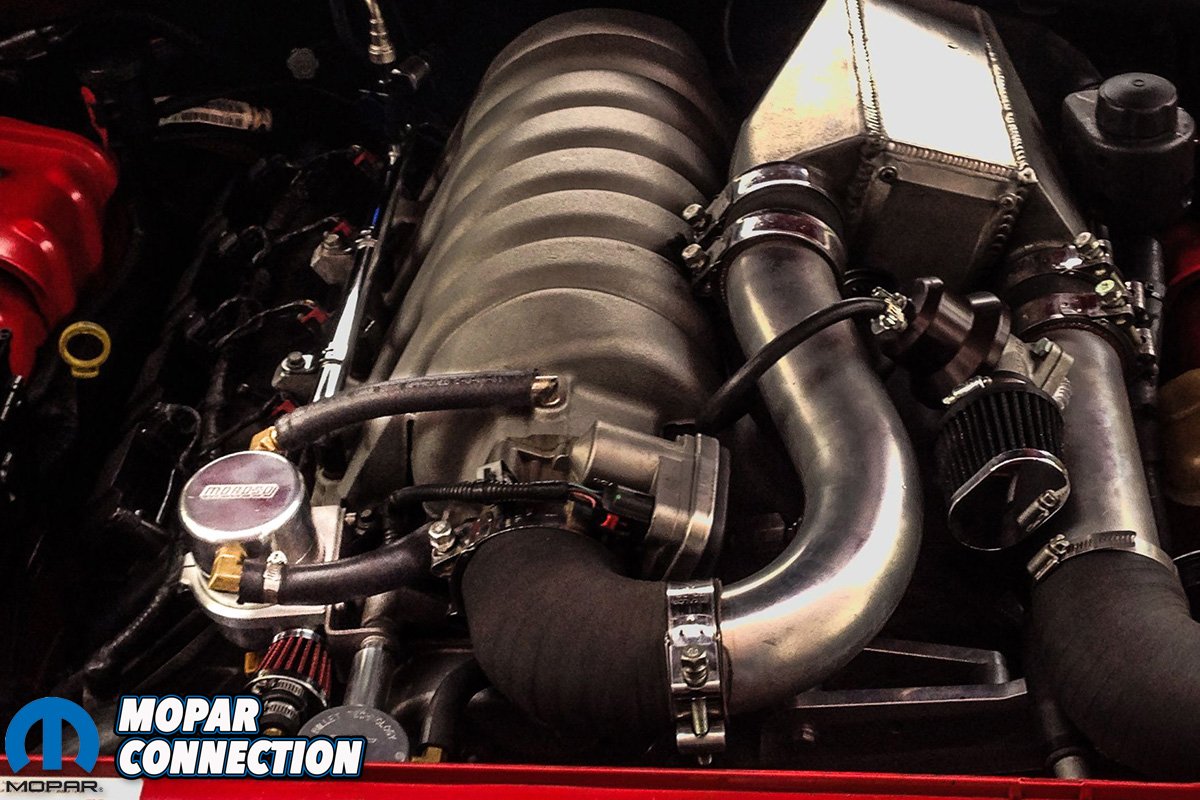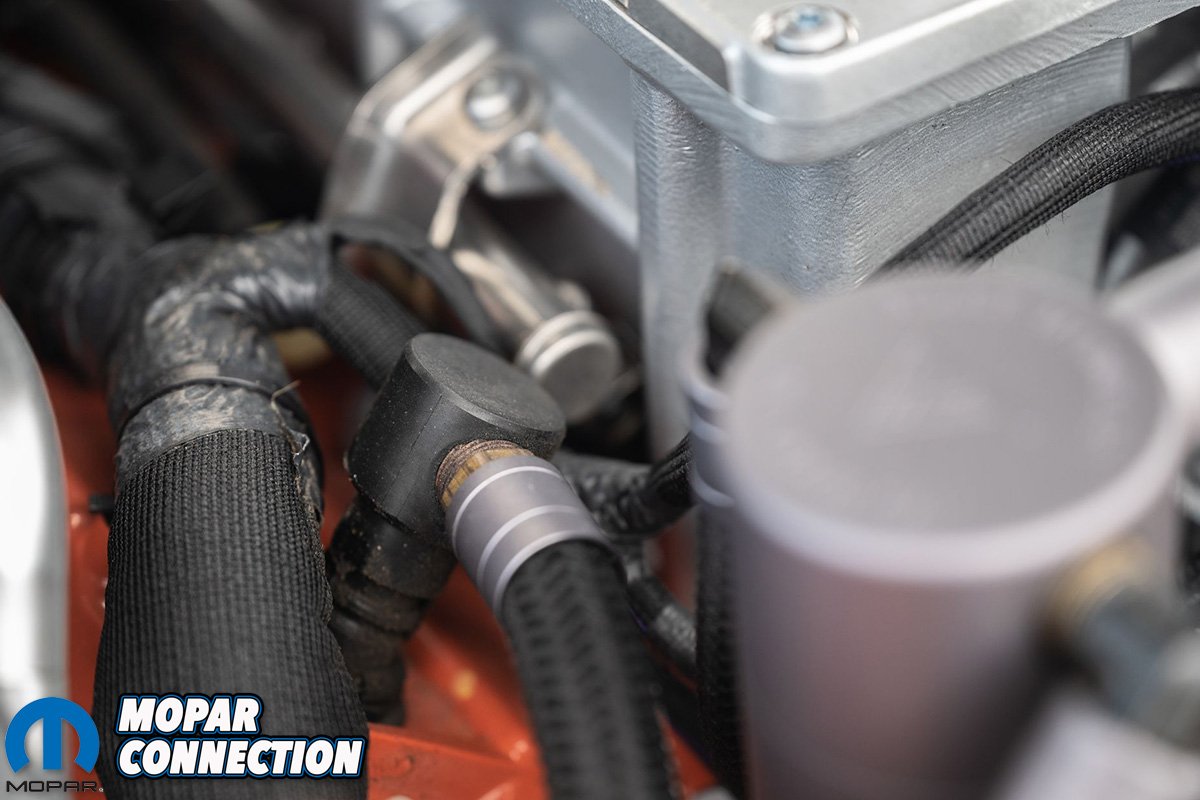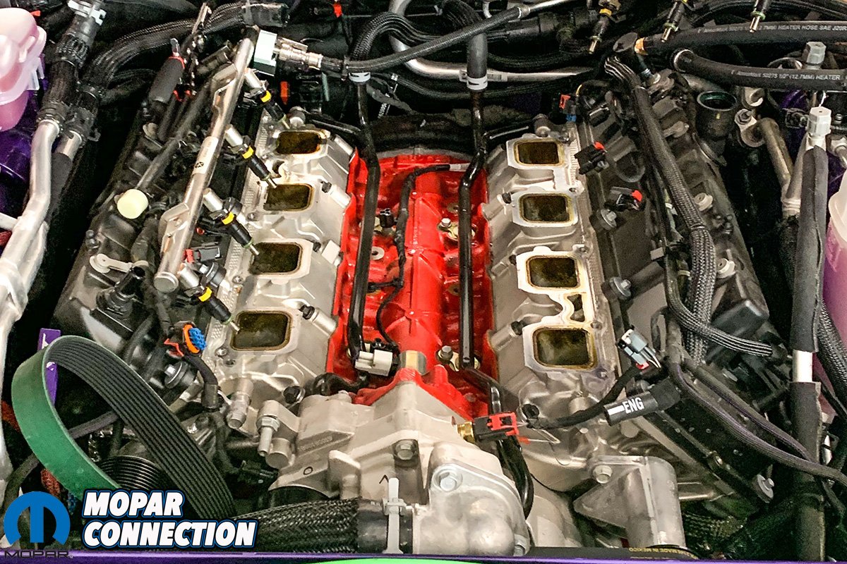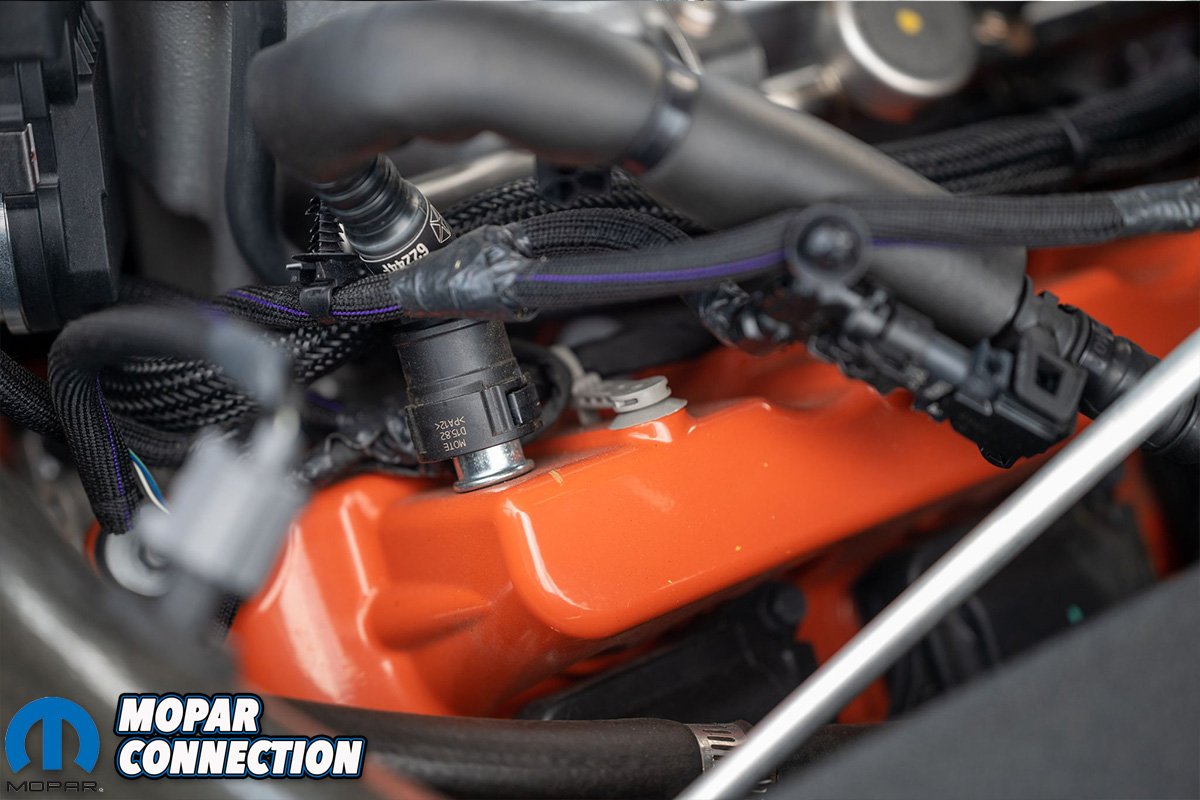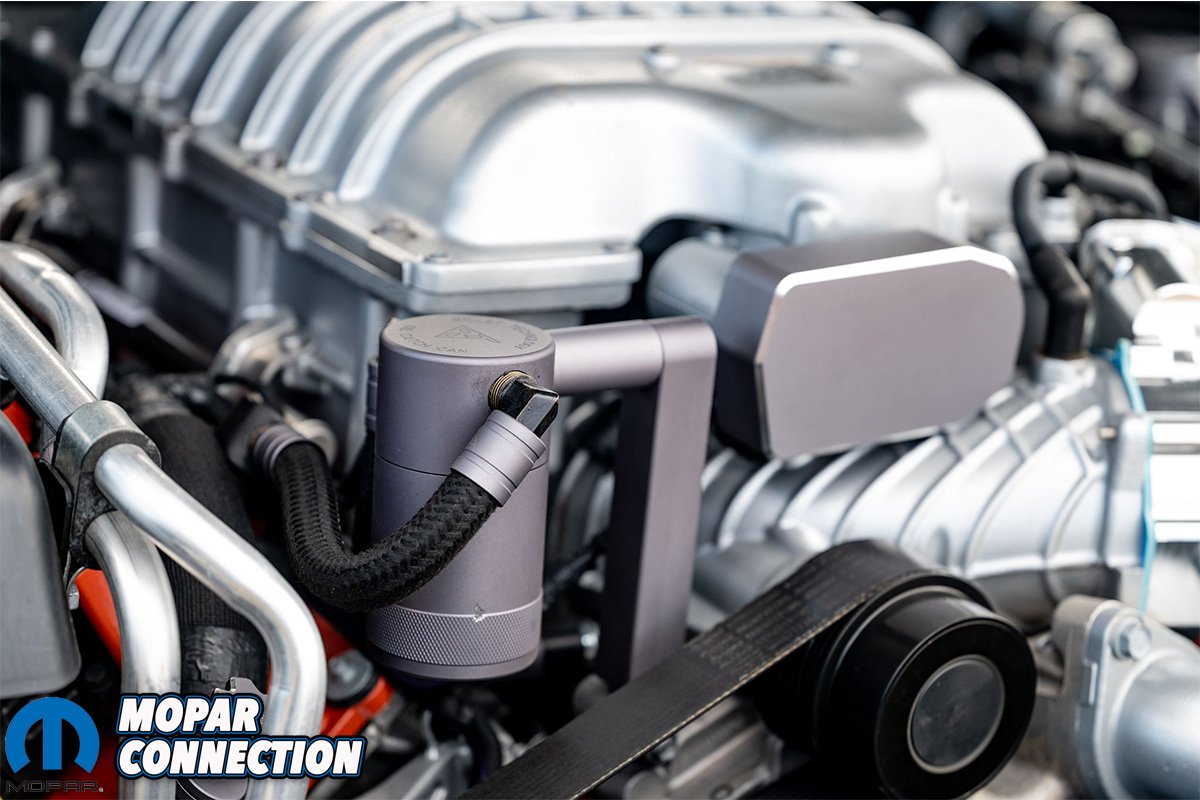 The 5.7, 6.1, and 6.4 Gen 3 HEMI motors generally just had one PCV outlet on the passenger side of the motor. The Hellcat motors have one on each side of the motor. The line off the passenger-side goes into the supercharger snout, and the driver-side line goes into the top of the intake tube.