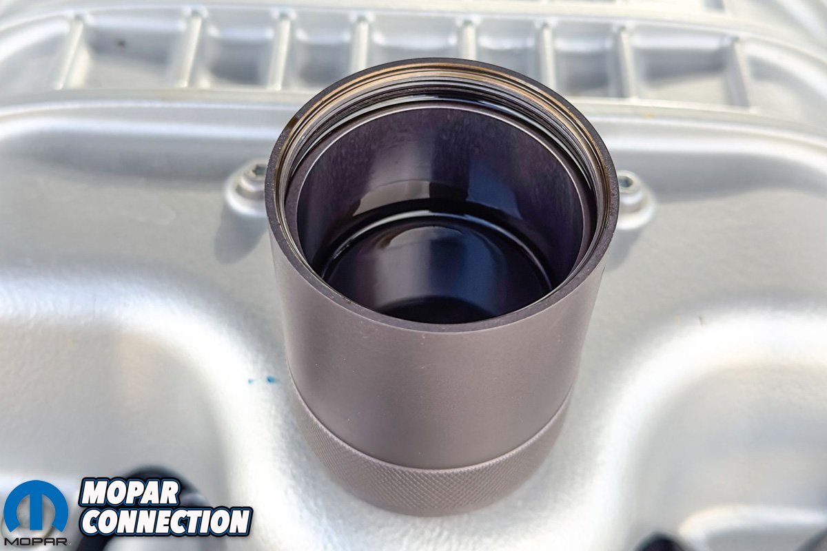 Above Left: Hellcat valve cover fitting. Above Right: Hellcat supercharger fitting.