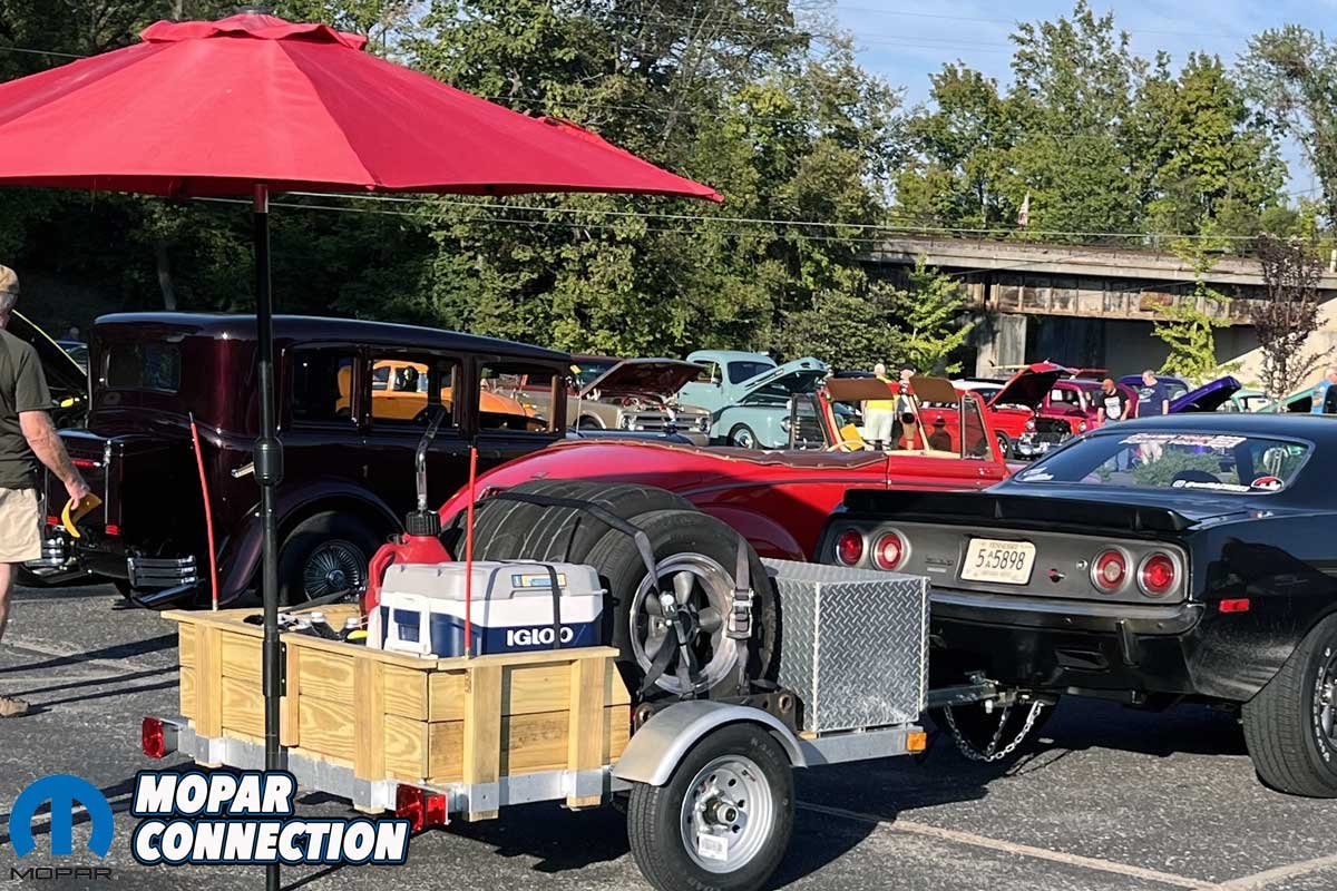 Above Left: The Cuda would never know the tiny trailer was in tow. Above Right: We made a few test runs with the trailer loaded before we found an adequate arrangement of our supplies for the best weight distribution.