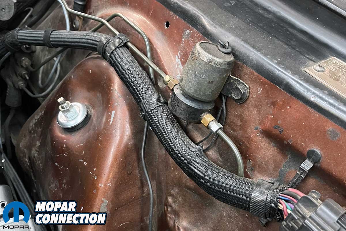 The ‘Cuda’s fuel filters had been on for a few thousand miles, so we pulled them apart, cleaned them with compressed air, and reinstalled them. We designed the filtration system to utilize a 100-micron filter at the inlet of the Holley Blue pump and a 40-micron filter at the outlet.