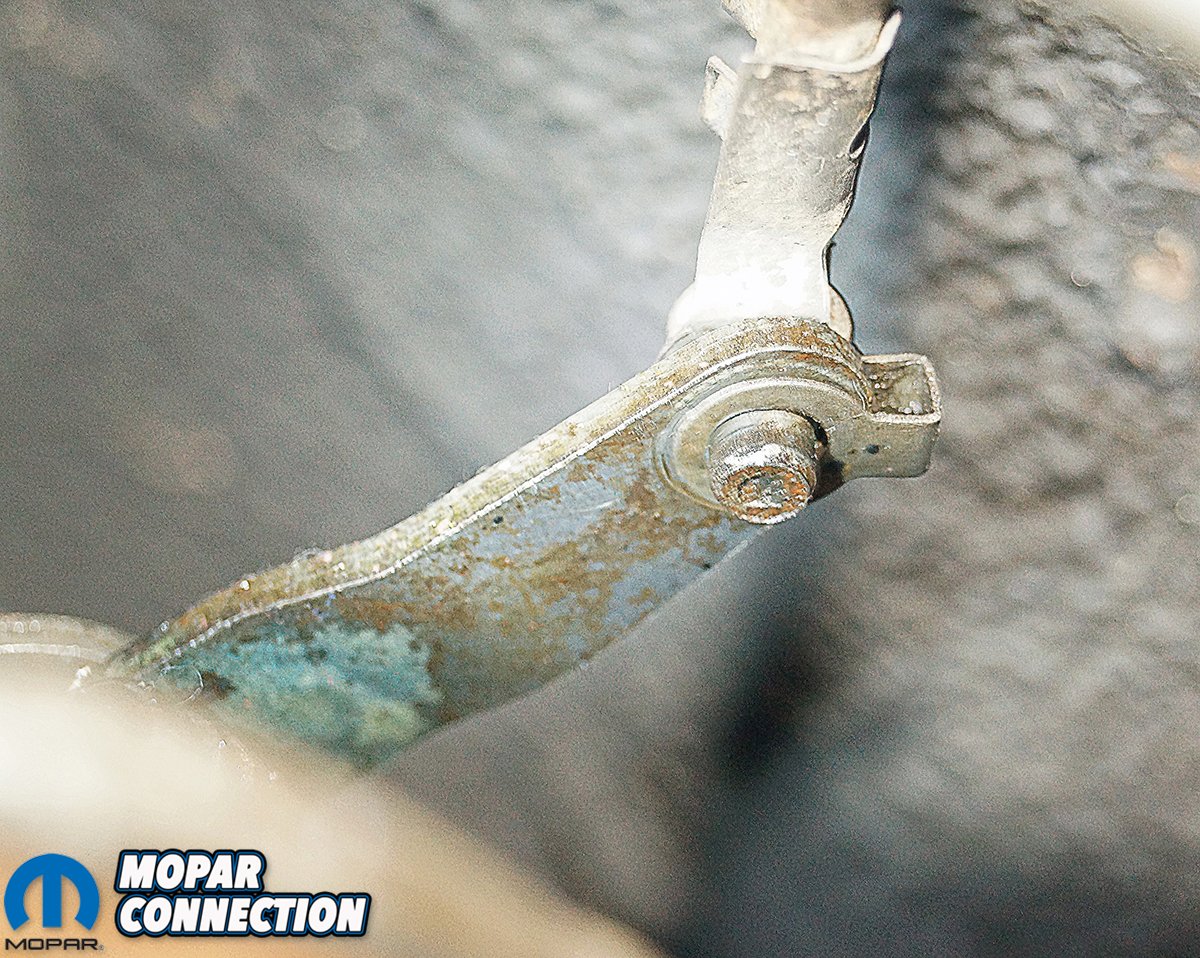Above: The Dart’s factory brackets, linkages, springs, and clips still remain in place.