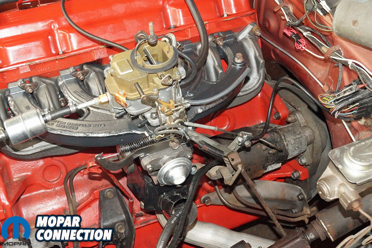 We found numbers from less than 5 hp to over 50 hp with just a swap from a one-barrel to a two-barrel carburetor. From Chrysler’s 1977 literature about the Super Six, the introduction of the two-barrel carburetor pushed the factory horsepower rating back up to 110 horsepower (net), which was equivalent to the 1960s output. The torque was up to 180 lb-ft, which was within 5 lb-ft of the highest ratings of the 1960s. With the torque and horsepower numbers back to the pre-emissions values, there was a noticeable improvement in the idle quality, the off-idle performance, the engine’s cruising attributes, and the acceleration of the vehicle.