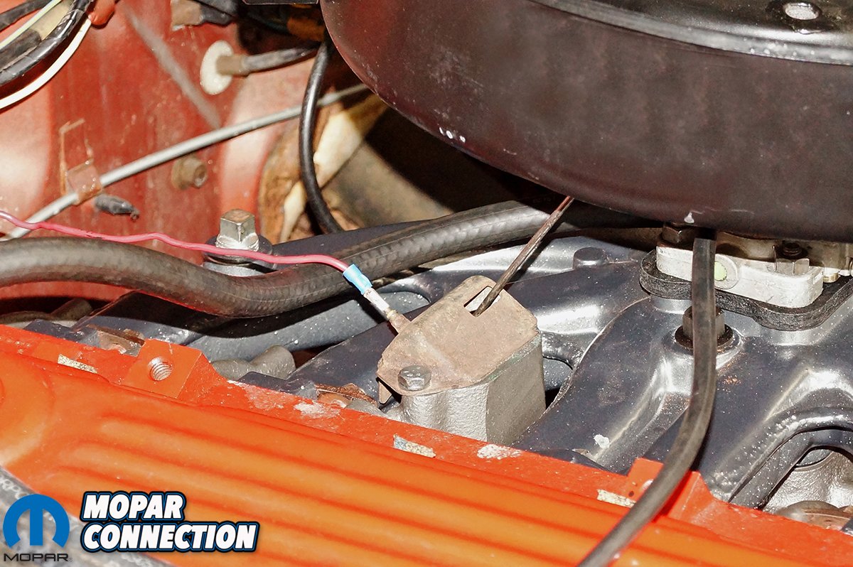The other end of the kick-down linkage was connected to the transmission shift lever, and following the factory shop manual, the linkage was properly adjusted. Before the air cleaner was installed, we wired the electric choke with a switched 12-volt source. The air cleaner heated inlet air system port was connected to the air cleaner housing, and the air cleaner filter element and housing were secured in place by the lid and wing nut.