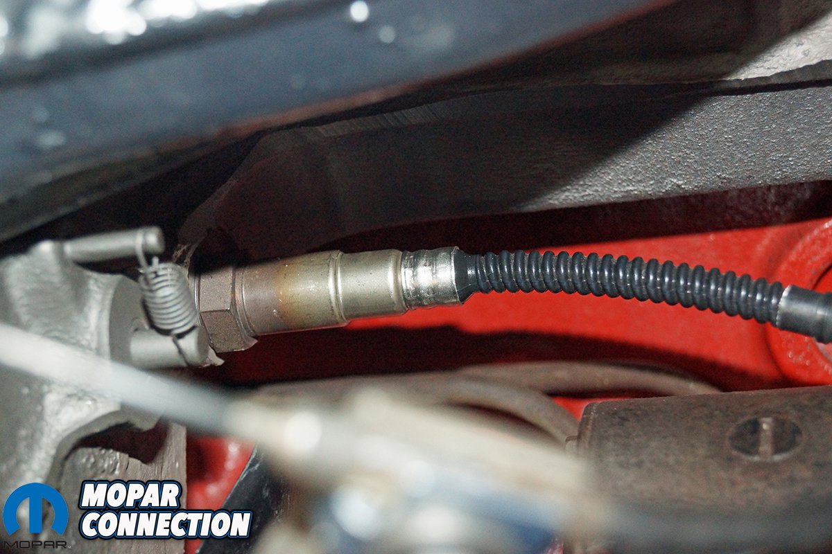 Top: We installed the much larger Super Six air cleaner housing onto the Carter two-barrel. Bottom Left: For our dyno testing, we utilized the O2 sensor bung on the Super Six exhaust manifold. Bottom Right: We tapped a 12-volt switched source and ran a wire to the choke heating element.