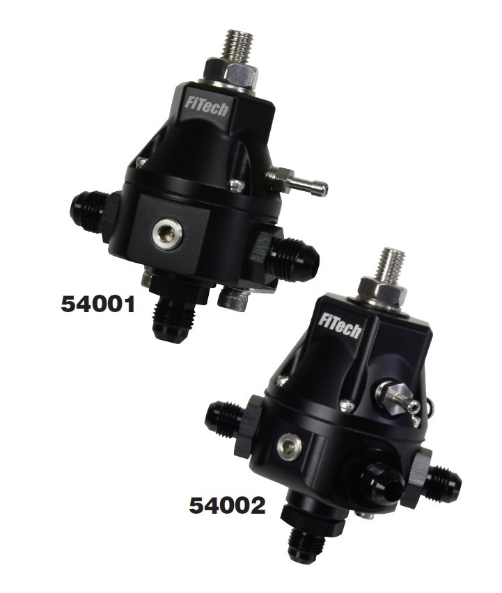 For the utmost customization, individual Go Fuel components are available as well. Regulators can be had in both single-output (P/N 54001) and dual (P/N 54002) varieties. Adjustment range is 30 – 70 psi and the billet aluminum bodies can flow enough fuel to support up to 1,000 horsepower. With -6 O-ring boss (ORB) ports and a provision for a gauge, adaptation and adjustment are simple. Boosted applications will be happy to find that they also incorporate a vacuum/boost reference port.