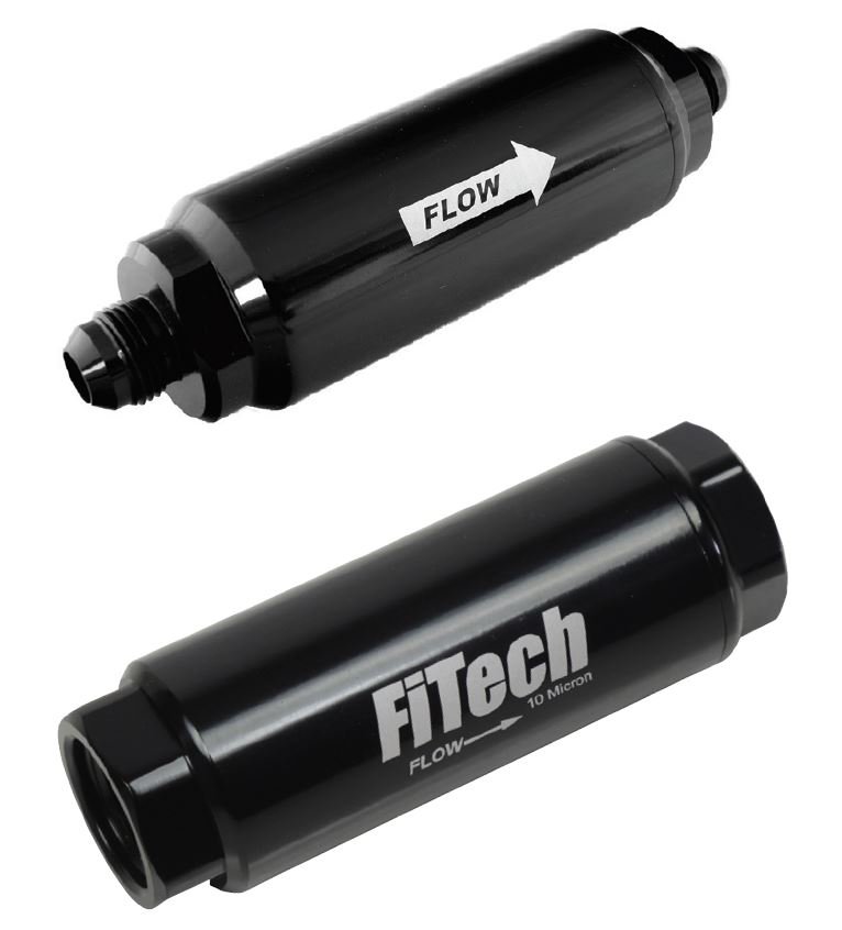 Filters aren’t all that exciting, but they are yet another critical component of EFI fuel delivery. Debris in pumps, throttle bodies, or injectors always ends up popping up at the wrong time, so FiTech came up with a couple of easy-to-main filters for protection. The 100-micron version (P/N 80111) is designed to be used before the pump to keep out any big tank contaminants. After the pump, a 10-micron unit (P/N 55001) is recommended for ultra-fine filtering before the precision components of the throttle body. Both feature a billet body and the 10-micron piece has a serviceable magnetic element. Lastly, a universal check valve (P/N 55002) will make sure fuel keeps flowing forward.