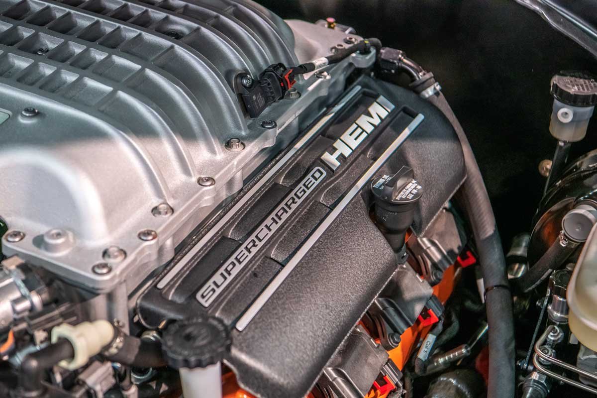 6.2-liter Hemi Hellcat crate engine producing 707 horsepower coupled to a TREMEC 6-speed manual transmission and limited-slip differential