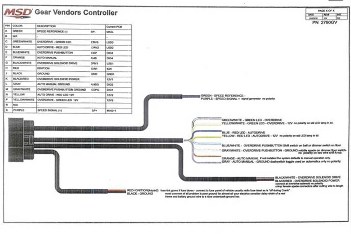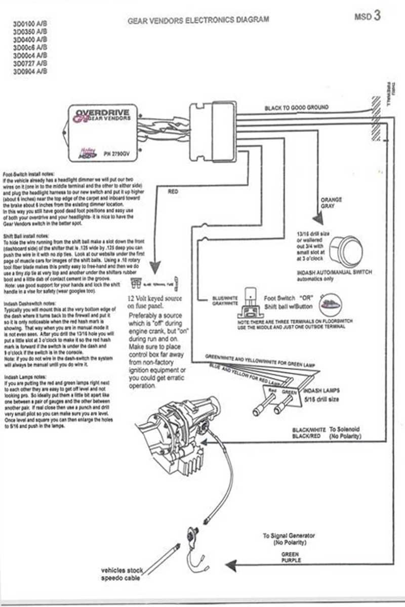 Above Left: The Gear Vendors kit includes an easy-to-follow color-coded MSD wiring diagram. Above Right: Velcro temporarily attached the overdrive switch (upper right) to the floor. We found the most comfortable location before permanently attaching it.