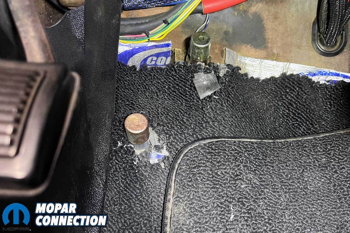 Some users prefer a push button on the shifter to operate the Gear Vendors unit, while others prefer adding a switch on the floor by the headlight dimmer switch. We opted for the floor dimmer switch option. The overdrive switch was placed next to the dimmer switch in the factory position. We drove around with the switch attached via Velcro to the floor for a few days while determining where we preferred it. Once we found the perfect location, we permanently mounted it with bolts.