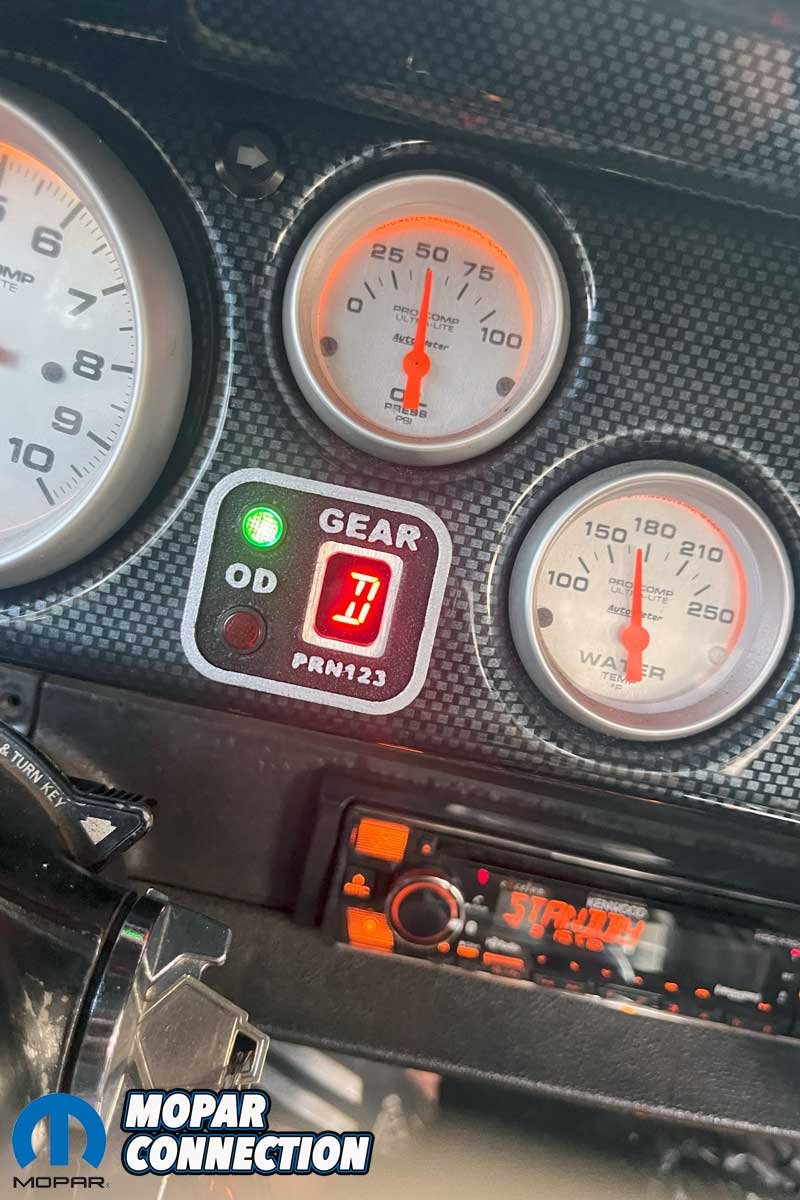 Above: Since we had Dakota Digital instrumentation in our dash, we added the Gear Vendors gear and overdrive selections to the display.