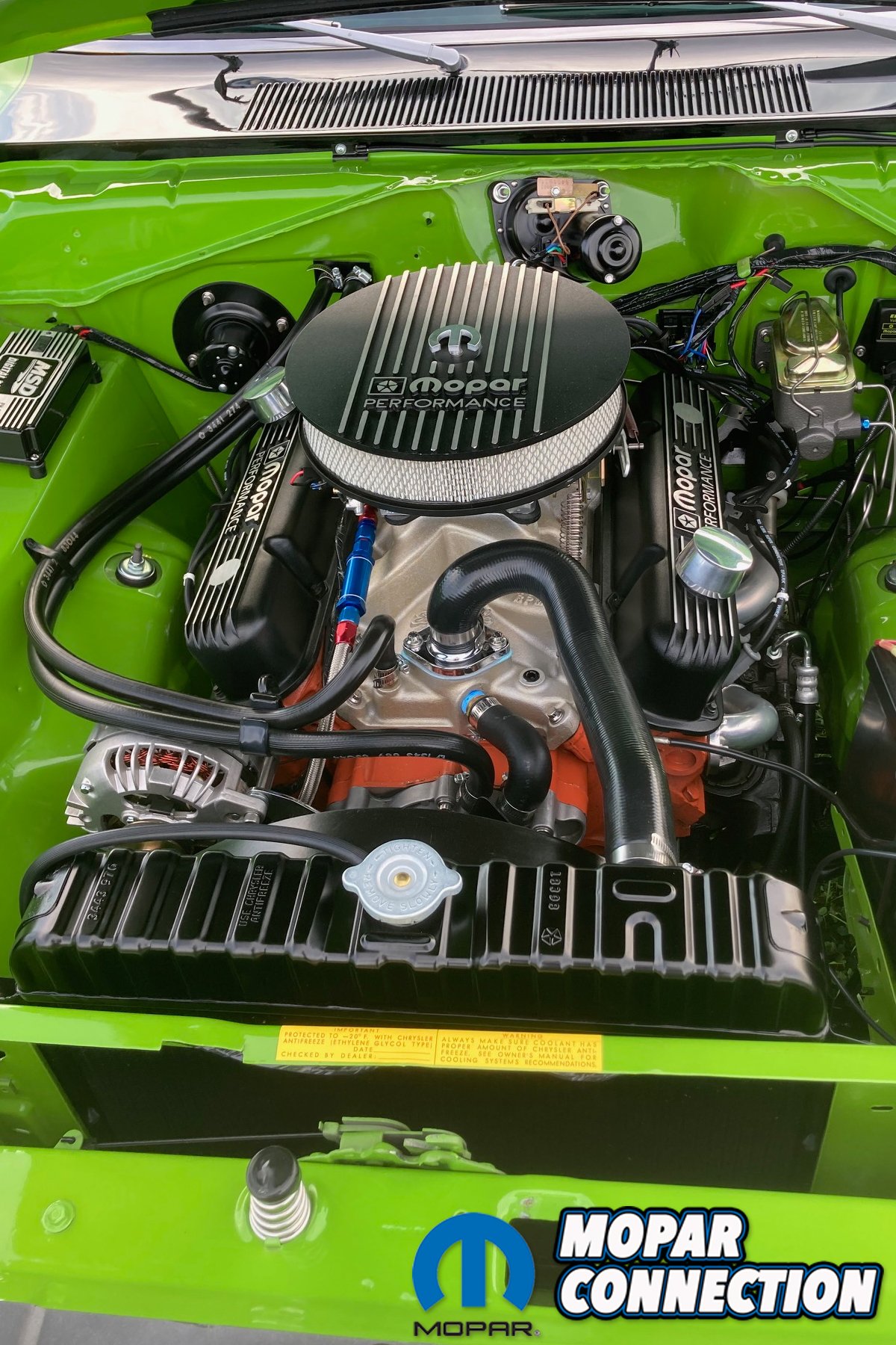 Enhancing the Hurst Hemi Under Glass theme is a laser like focus on attention to detail that further amplifies its “Cudaesque” theme. Since the Hurst Hemi Under Glass was a ‘Cuda, and later E-Body versions of the ‘Cuda were fraternal twins to the Challenger, the Hemi Classic GSS Challenger has been infused with ‘Cuda DNA in the form of accents that more than hint at its heritage. Examples include the ‘Cuda Gills on the front fenders that are an exact match for those first seen on the 1971 Hemi ‘Cuda and the ‘Cuda Gill rocker trim that is reminiscent of the originals on the 1970 Hemi ‘Cuda. Adding fuel to the racing inspired fire is the bold 1968 Hemi ‘Cuda Super Stock style hood scoop that lets everyone know that the Hemi Classic GSS Challenger is anything but ordinary. And anchoring the Super Stock hood during high speed runs is a set of Mr. Norm’s 1971 Hemi ‘Cuda style functional hood pins and lanyards, emphasizing the near seamless marriage of vintage and modern upgrades that can be found throughout the Challenger.