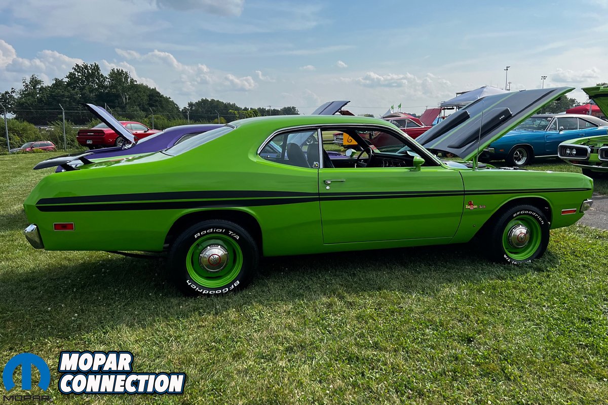 In today’s brave new world, aerodynamics plays an important part in high speed action, and the Hemi Classic GSS is well equipped to meet the challenge. Aero aids include a Mr. Norm’s GSS Super Speedway front splitter that mounts beneath the Hellcat front spoiler. Like the splitter that is so effective on the Viper GTS-R, it provides additional downforce up front, while out back, a Mr. Norm’s GSS Speedway Rear Spoiler that’s taller than its stock counterpart provides the balance necessary to help keep the rear of the Challenger firmly planted on the asphalt, especially when the speeds approach and exceed the triple digits.