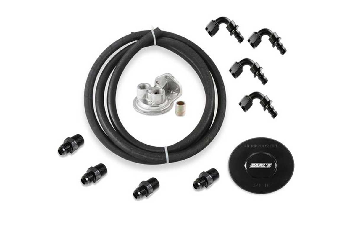 Above: Holley and Earls have oil filter adapter kits and oil filter relocation kits to place the filter at a better location or a remote location for ease of access.