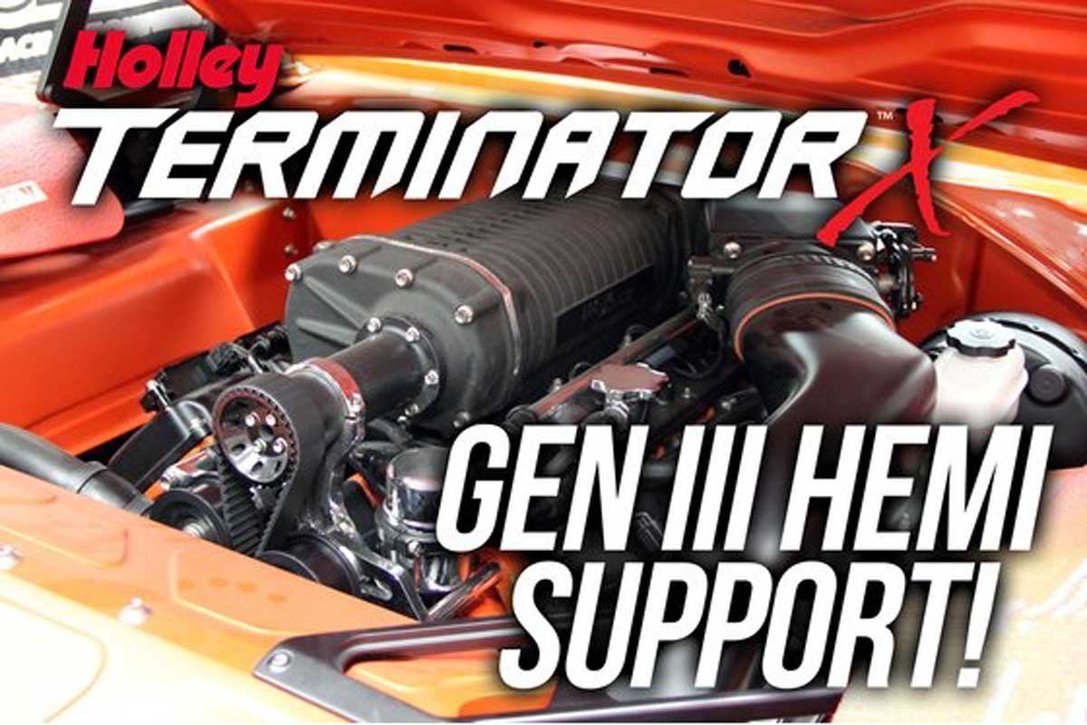 Holley has the Terminator X and X Max, a plug-and-play Gen III Hemi engine management system for the 5.7-, 6.1-, and 6.4-liter Hemis. Depending upon the kit selected, the engine controller can operate an electronic automatic transmission and the drive-by-wire throttle body. In addition, the controllers have diagnostic light-emitting diodes (LEDs) to allow the operator to pinpoint sensors/components performing outside the programmed parameters.