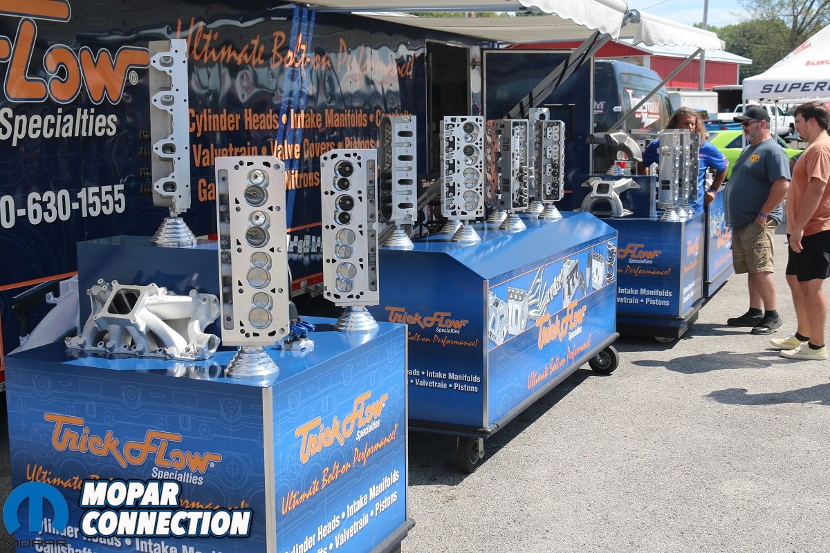 Trick Flow had their latest aluminum cylinder heads and intake manifolds on hand including the hugely popular PowerPort 240 heads and Track Heat single plane intake for RB block Mopars. Muscle Car Restorations, Inc. (MCR) showed off an exquisite 1970 Plymouth ‘Cuda as a testament to their terrific work. With a 340 engine, 4-speed transmission, Shaker hood, rear window louvers, and FK5 Deep Burnt Orange Metallic paint, it checked the best boxes.