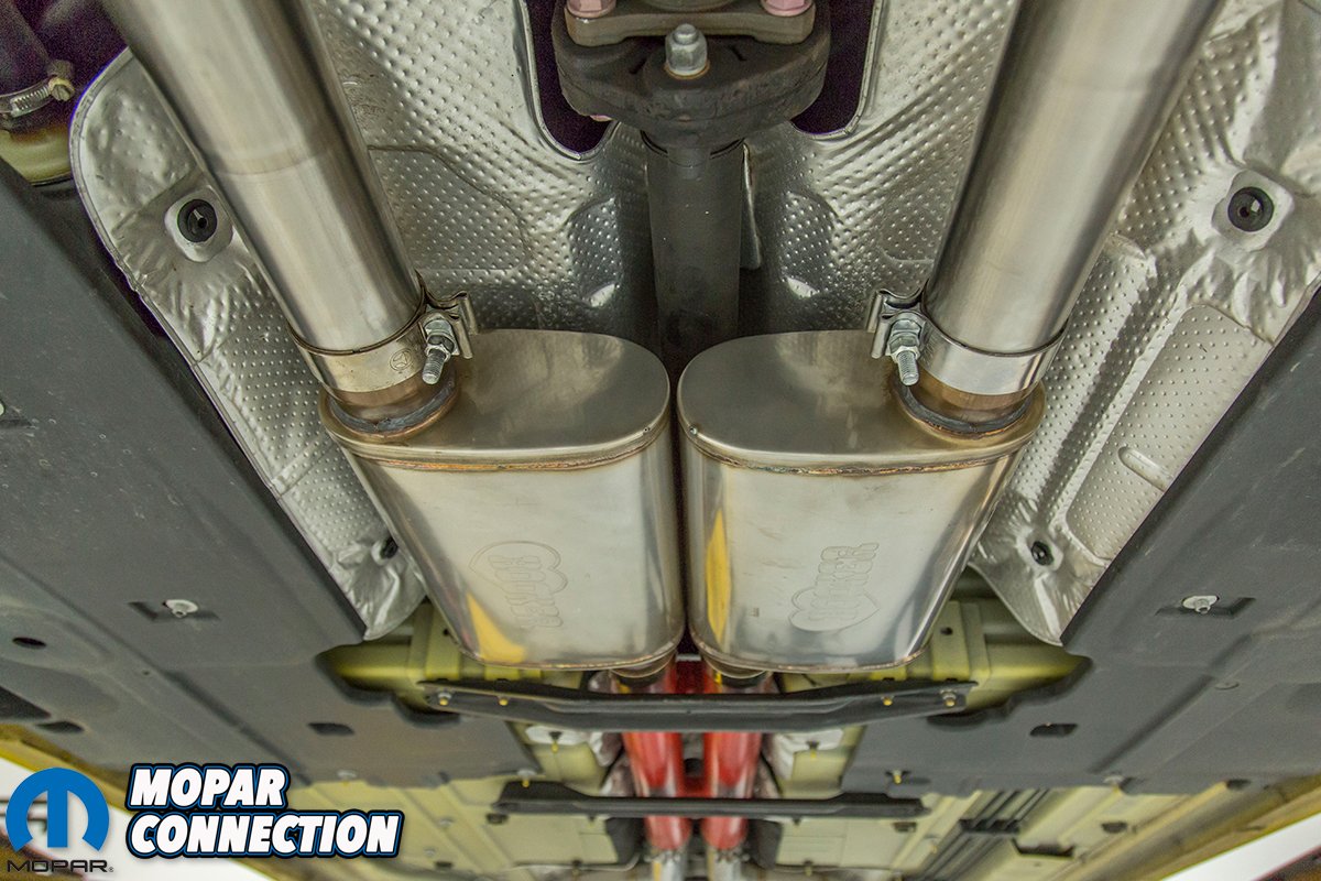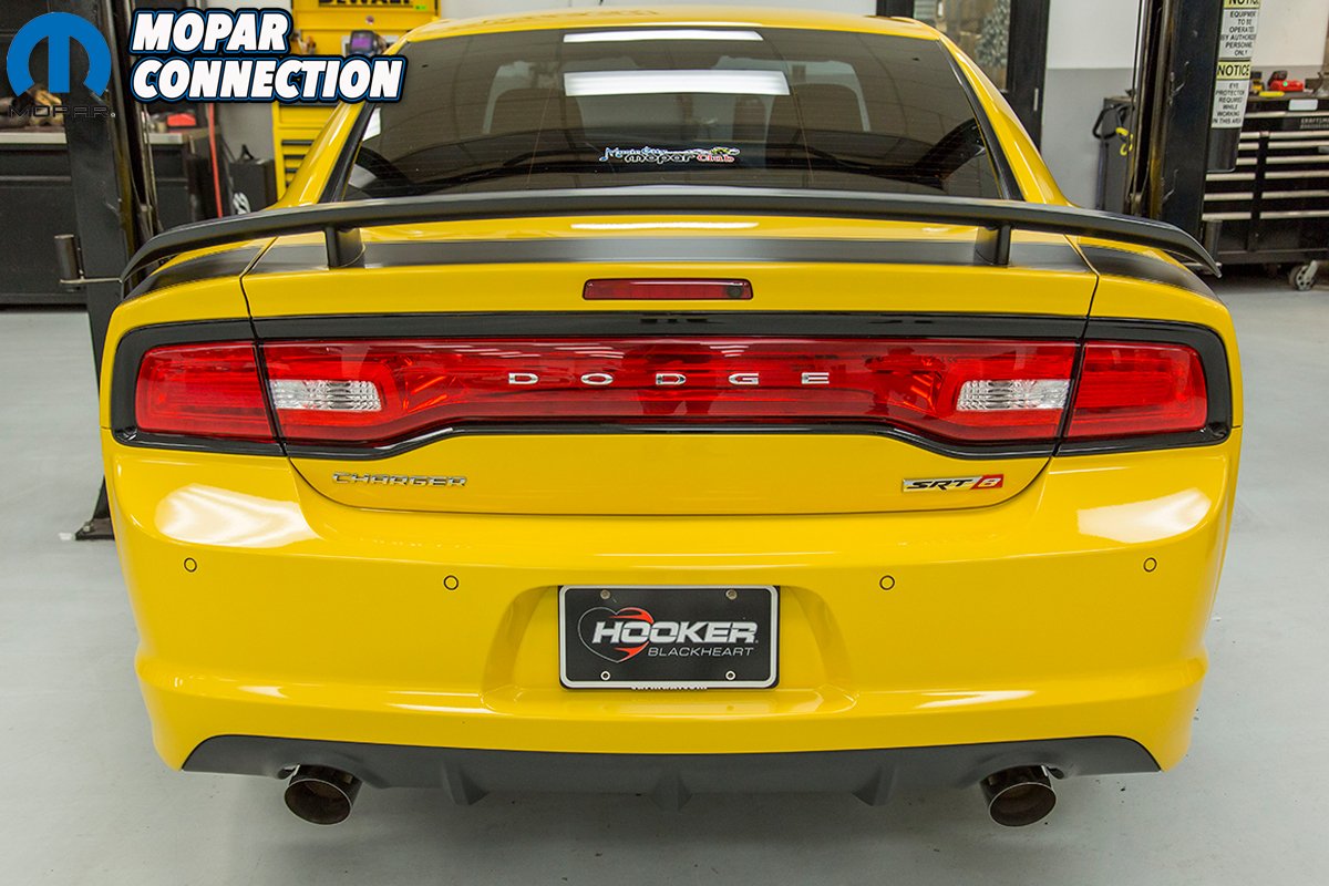 Above: Unlike other custom exhaust systems, the Blackheart system looks perfectly at home within the factory lower valance, giving this ’11 Charger Super Bee SRT8 a very natural look, as if it came from the factory with 3-inch exhaust.