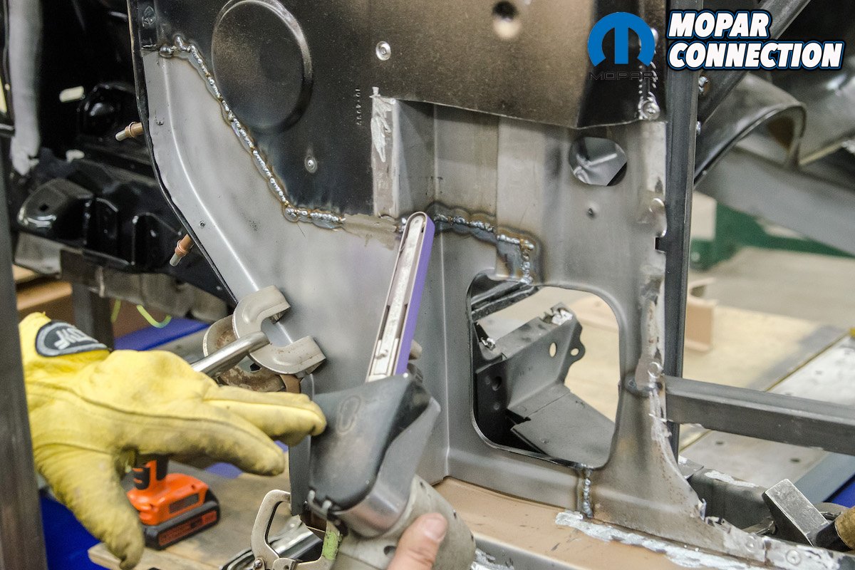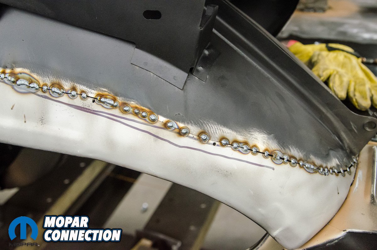 Above: Whenever possible, a state of the art spot welder is used to duplicate the original factory look. It’s also much a much more efficient method than plug welding.