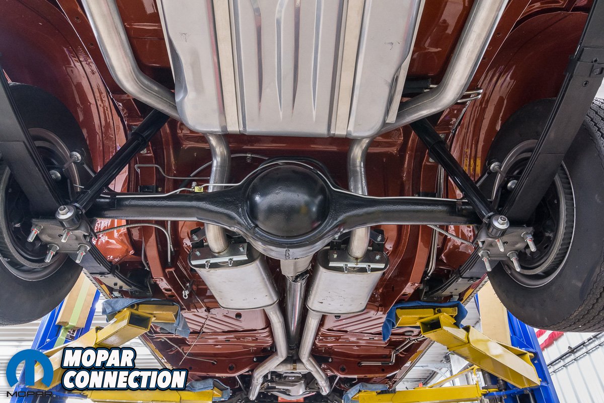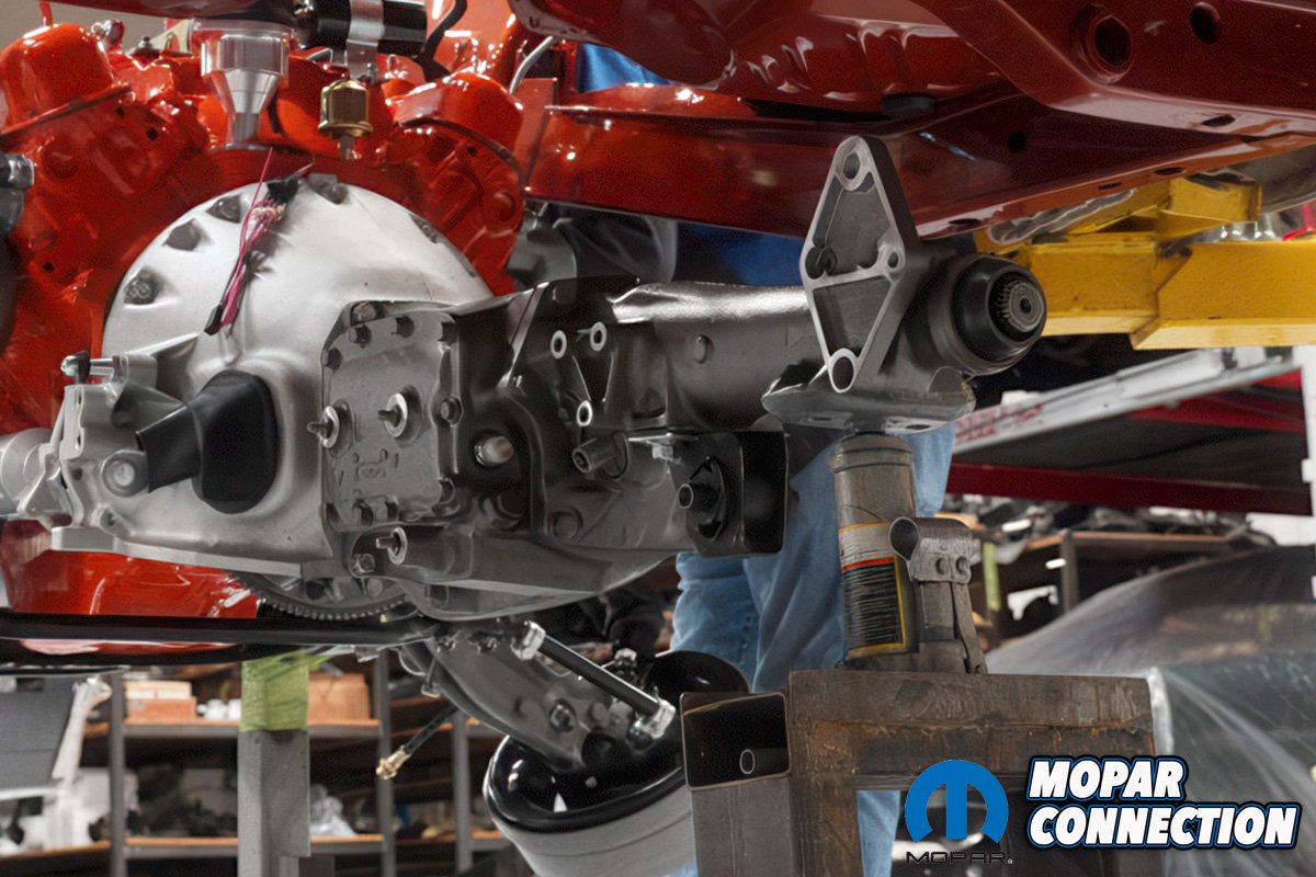 Above left: The transmission choice is a 4-speed of course. While MCR could fit any number of aftermarket 5 or 6-speed manual transmissions into this car, John choose to stick with the classic A-833 to keep the stock driving experience. Above right: There’s no need for anything other than the stock 8 ¾-inch differential. It’s more than tough enough for a 350 HP 340. John chose a moderate 3.55 ratio for a nice balance between cruising performance and gentle highway RPM.