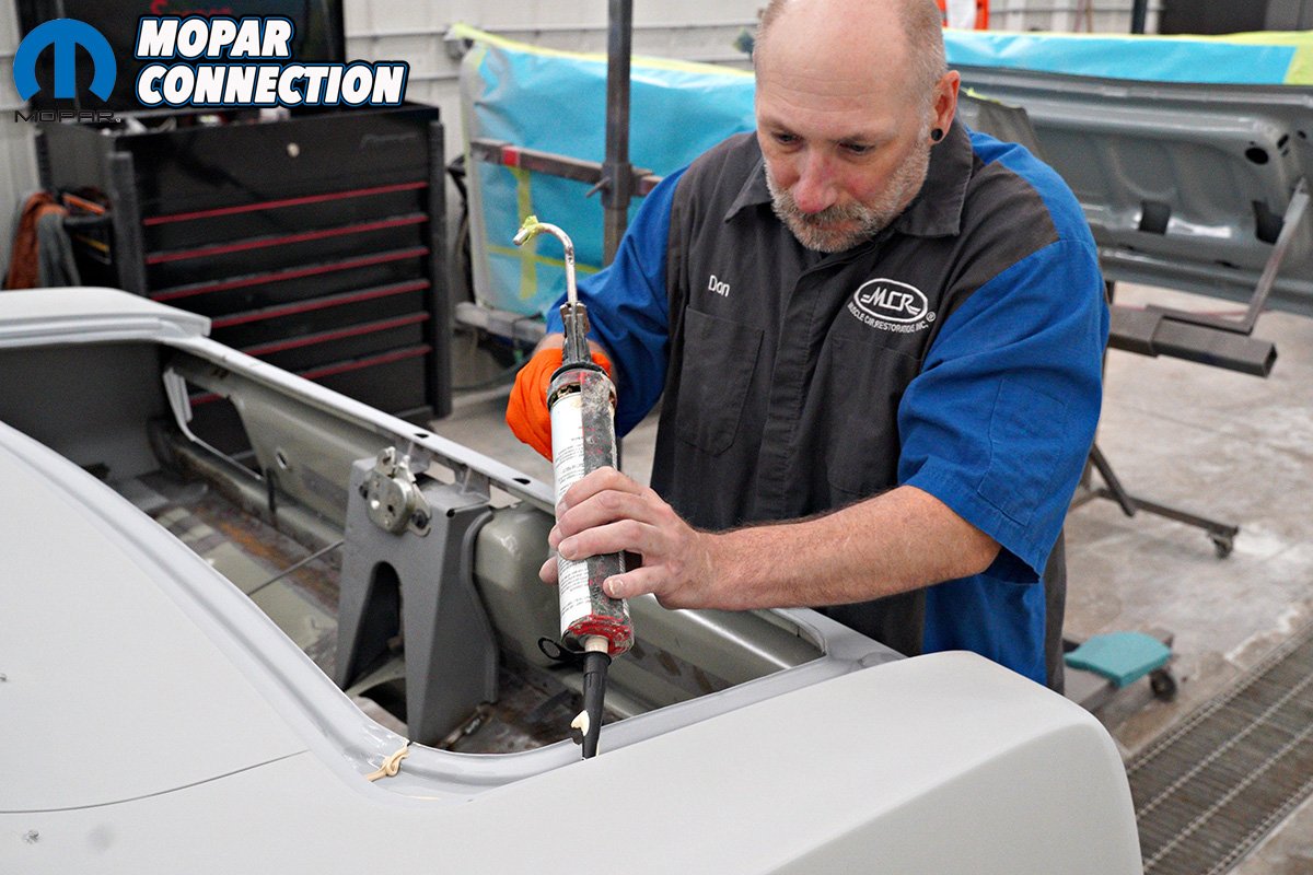 Above: It’s at this point that seam sealer is applied to all the factory locations. Following that, the final step before paint is a coat of DAS 3025 urethane sealer.