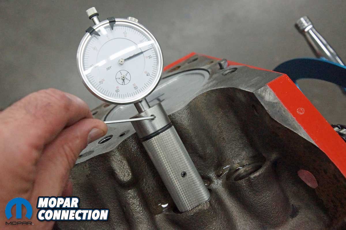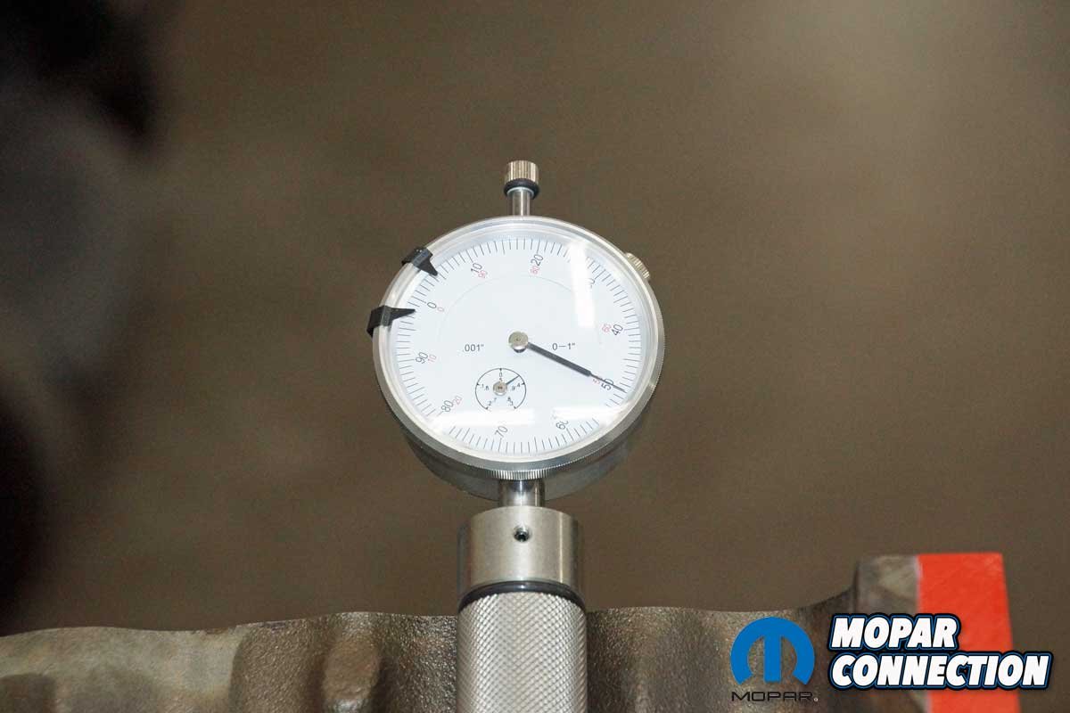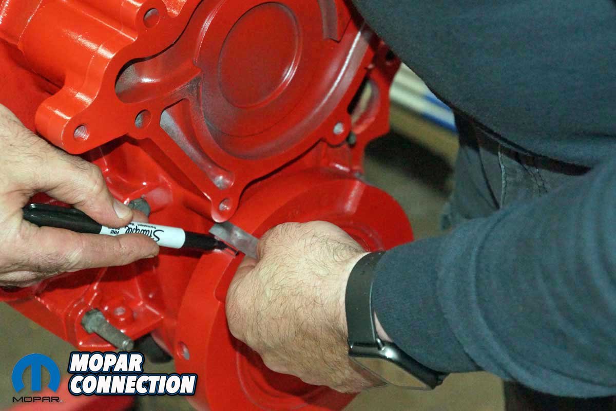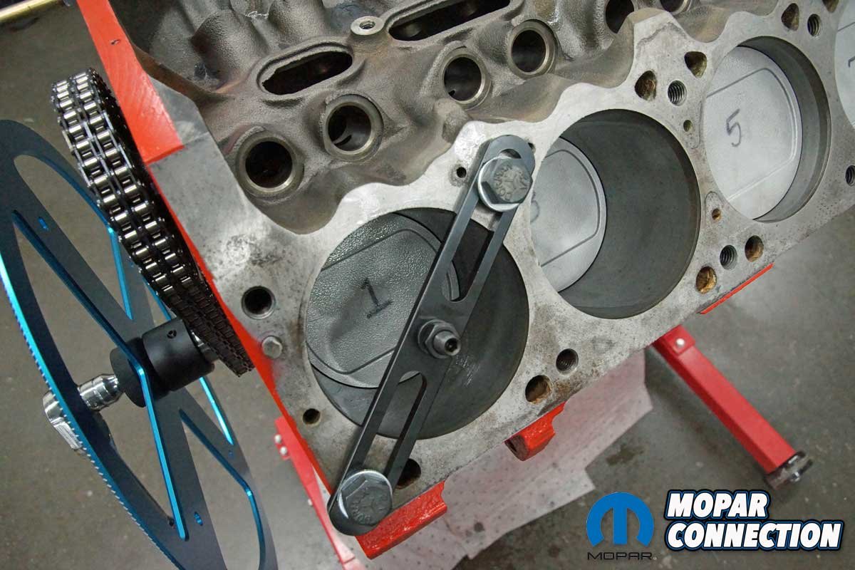 Satisfied with the results, we had one last test. With piston one down the hole, we reinstalled the piston stop and installed the harmonic balancer. The crankshaft was rotated until the piston made contact against the stop. We marked the balancer at the TDC mark of the timing chain cover.