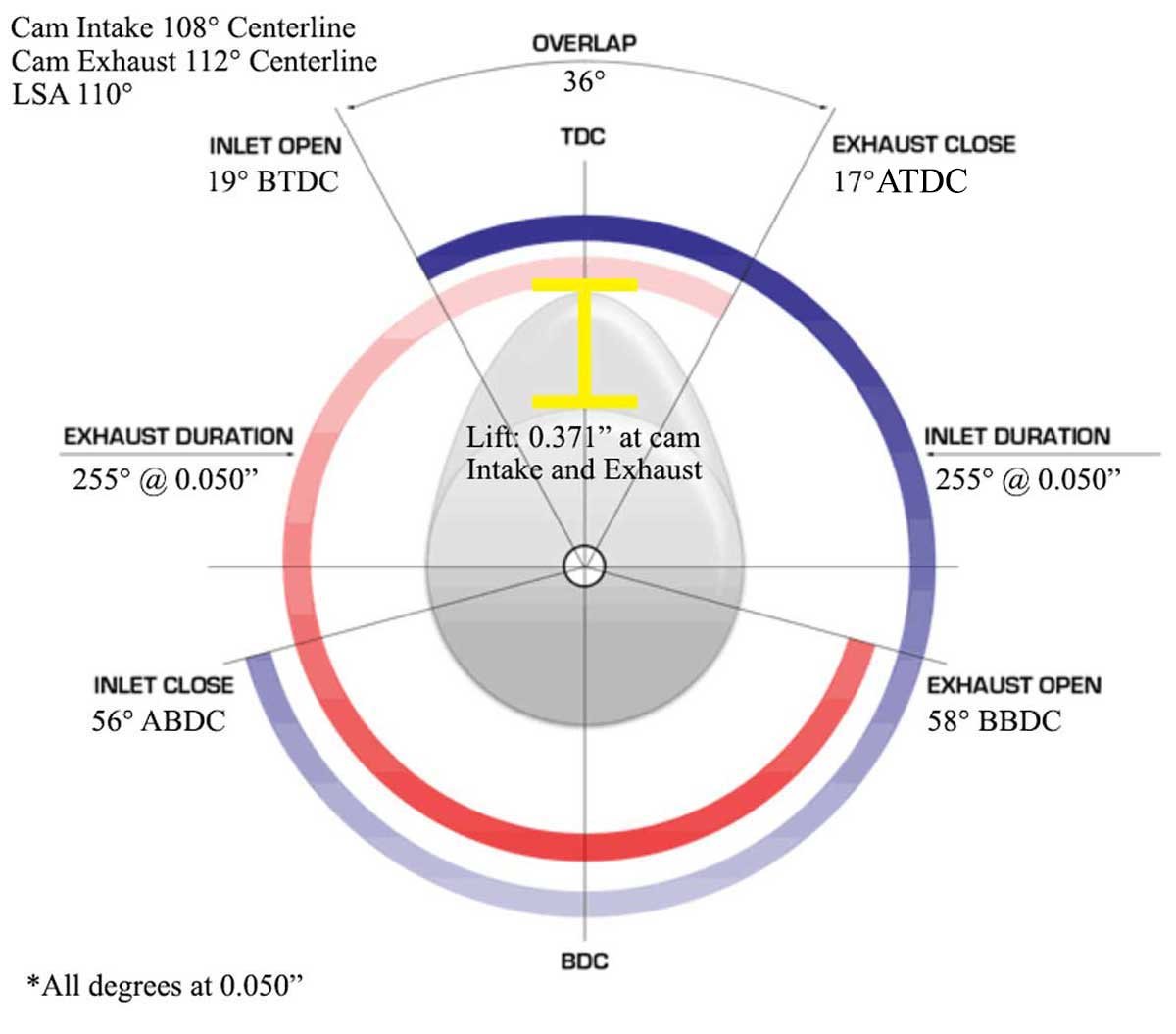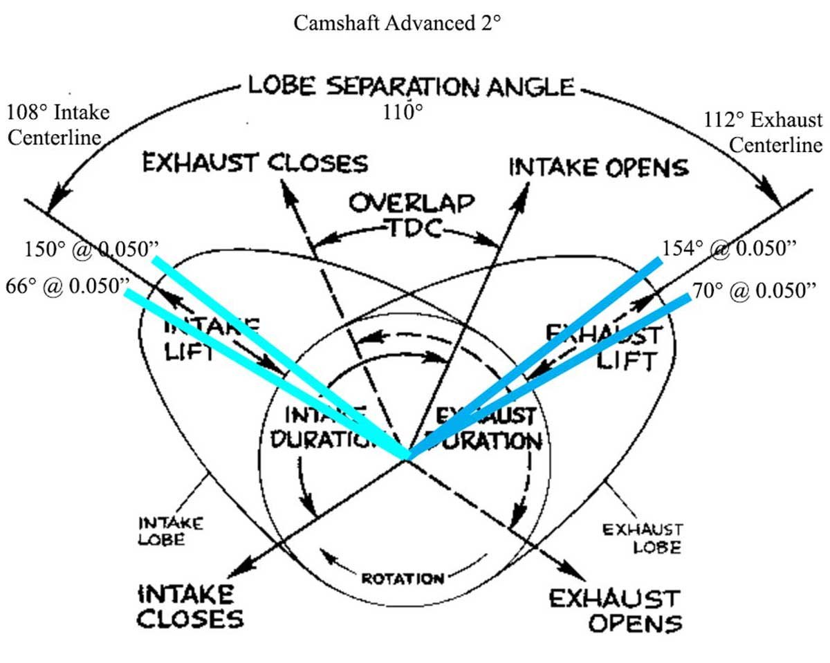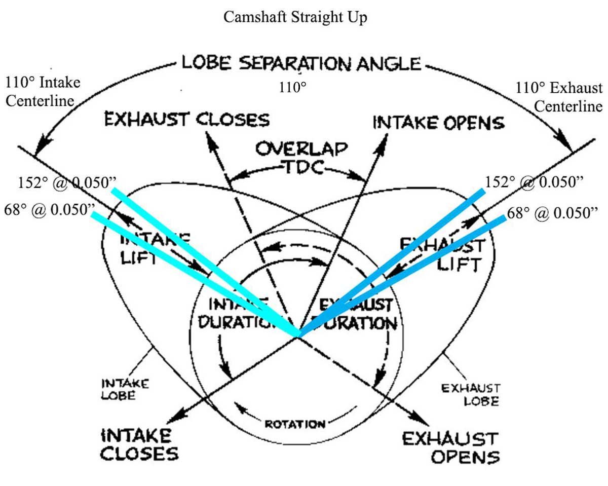 By measuring at 0.050”, camshafts from multiple manufacturers can be more accurately compared rather than relying on advertised duration. Centerline is the position of maximum cam lift in relation to the crankshaft. There is an intake centerline point and an exhaust centerline point.