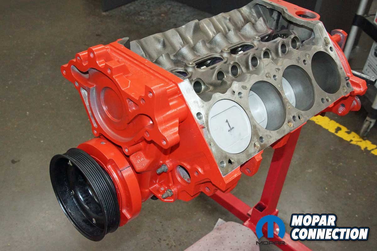 We had a 360 Magnum short block from a 1996 truck. There were plans for the short block at one time, but eventually, it remained on an engine stand in the corner of the shop wrapped in a black plastic bag. We pulled the 360 out of its hibernation, and after a quick overview, we found a loose timing chain.