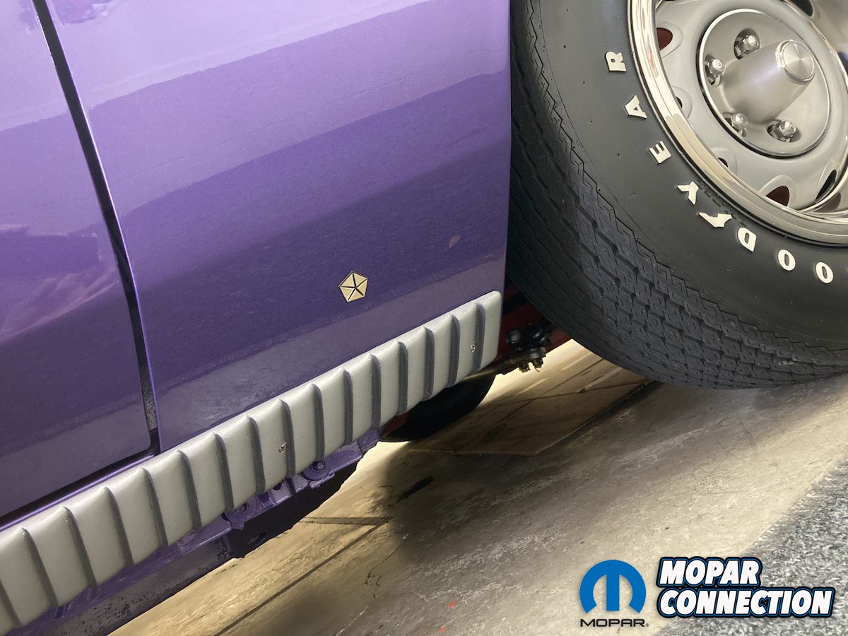 Above: Here is the painted rocker gill mounted on the Comeback ‘Cuda. We intentionally wanted to show the look of a one dimensional rocker gill installed on the car. But the designers from Plymouth had an artistic technique to bring these gills to life and make them something everyone would notice.