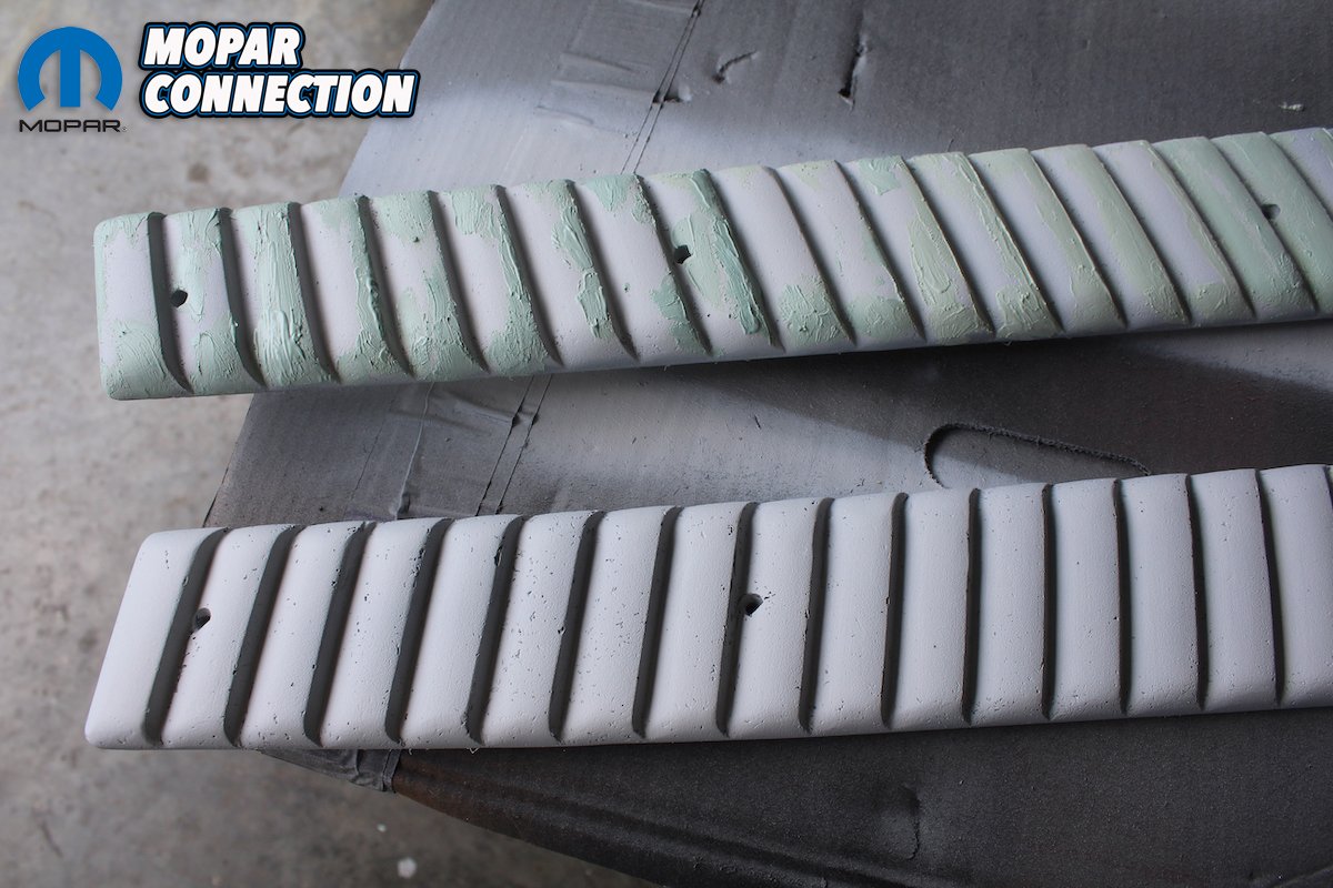 To get the rocker gills to factory correct appearance it took more than just shooting on the silver paint from Frank. Our theory is Plymouth used a two-step process to create a three-dimensional look that really brought these gills from plain to outstanding. To say they catch your attention is an understatement. Follow along on our step-by-step process and you will see what we mean.