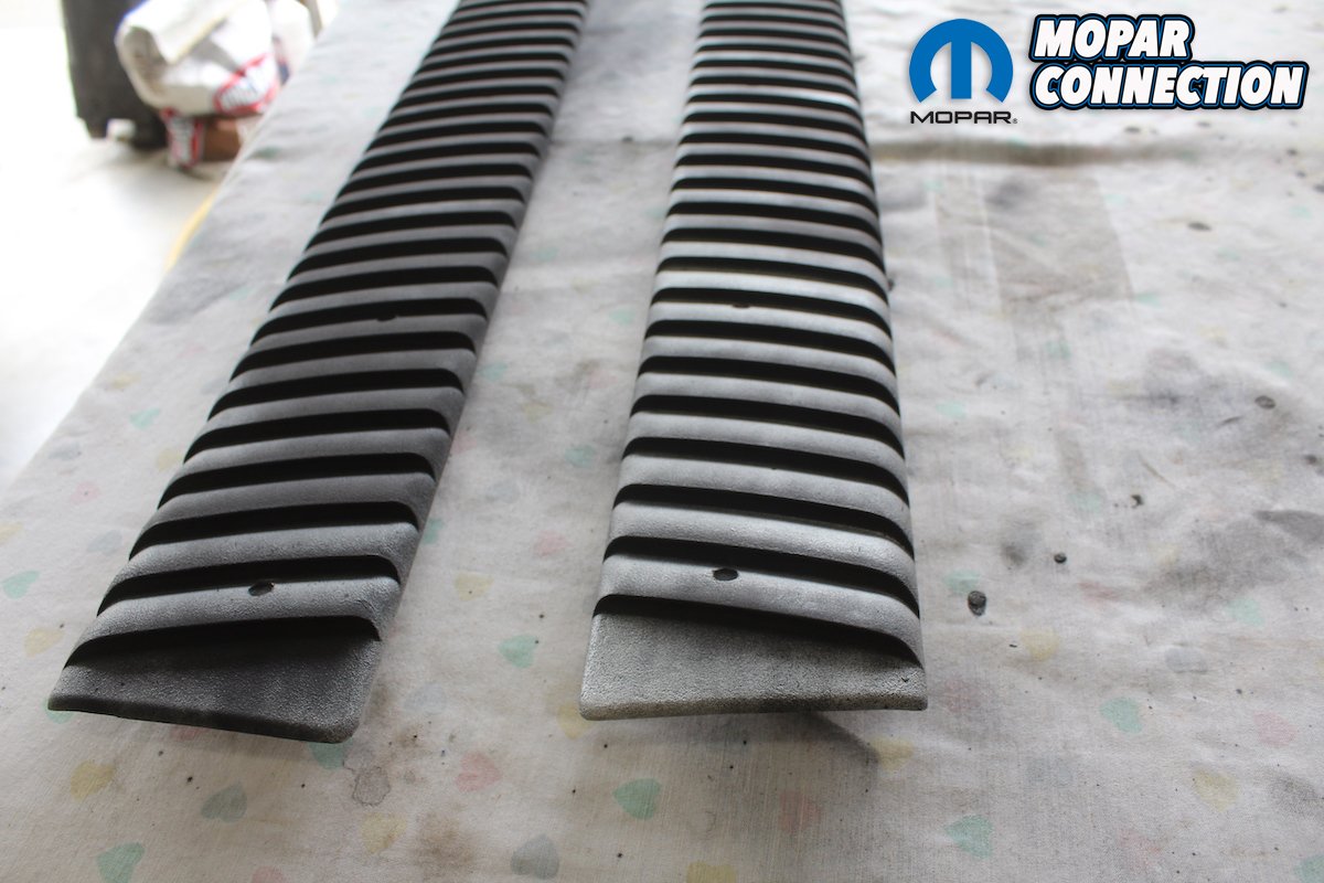 After restoring and installing the grille and “Shaker” scoop on the Comeback ‘Cuda we then turned our attention to the rocker gills. These are a one-year only feature and they are unique to the 1970 ‘Cuda model. In 1971 the “gills” were moved to the front fenders just in front of the doors. When you see a base Barracuda without these gills it just looks bare and unfinished. The designers at Plymouth were known for creating cool paint schemes and these gills are too cool for school.