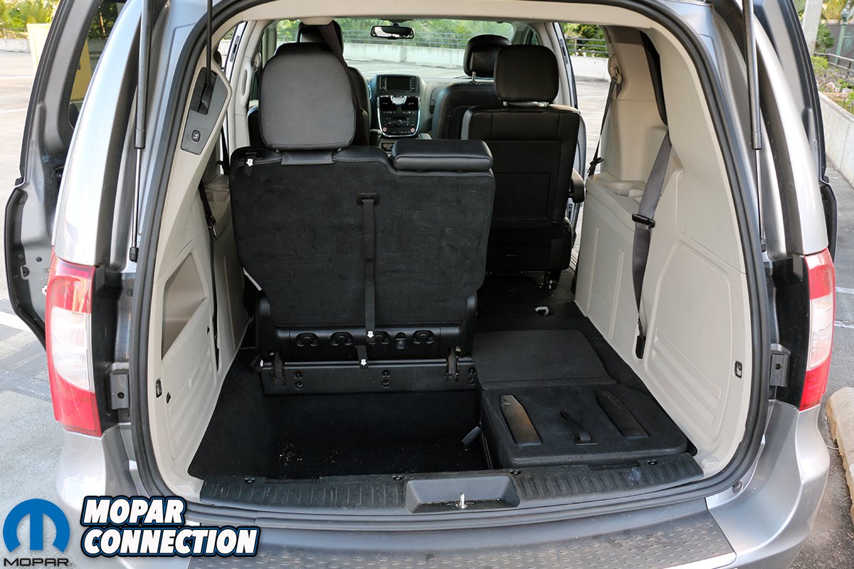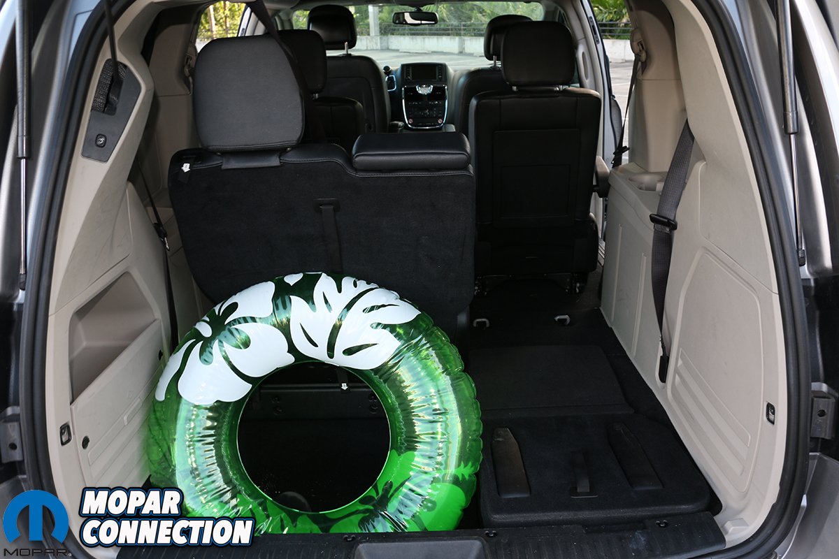 To start off, the Town & Country comes standard with four captains chairs (with a rear bench). The one-touch Stow ‘n Go second-row seats reclined and could be slid forward or back. Even the rear bench seat reclined, with plenty of leg room to stretch out and get comfortable. Speaking of which, although we never needed to fold the seats down flat, we could use the Stow ‘n Go compartments as extra hidden storage for camera bags, purses, etc., when we were at the typical tourist traps. The standard remote keyless entry and the power lift gate also made loading/unloading the rear cargo area a snap.