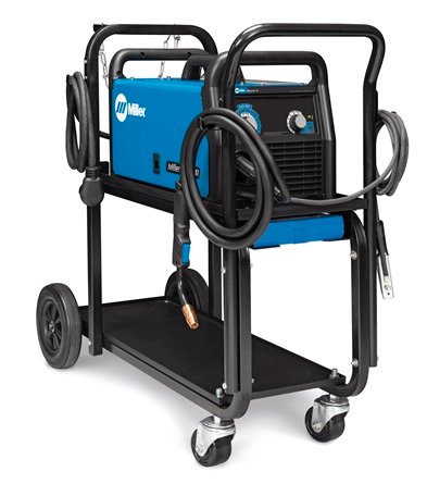 To provide the best welds for your projects, it is wise to forgo the flux-cored wire and use a solid wire with the mix flow gauge regulator providing a shielding gas from a tank of 75% Argon and 25% CO2. The shielding gas along with a solid wire electrode produces a clean, slag-free weld without the need to repeatedly interrupt the welding process to clean or replace the electrode. Shielding gas increases productivity and reduces clean-up requirements. The tank with the gases can be purchased (or rented) from any quality welding supplier. To support the tank along with the 141 welder, an optional Miller Running Gear/Cylinder Rack (part no. 301239) can be selected. The cylinder rack is on wheels, so the unit can be moved to the work as needed.