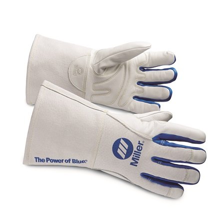 To protect the hands, ergonomically designed welder’s gloves made of soft, supple top-grain leather are available in heavy-duty or medium-duty designs for MIG welding. These welding specific gloves will provide hand protection while allowing enough dexterity to grip the gun or to adjust the knobs on the equipment. The gloves will protect the skin from burns from the welding spatter, but the gloves will not withstand direct contact to hot, freshly welded material, so the use of pliers to move material will protect the gloves (and hands). Some professional welders in a high-volume shop will opt for a welding apron that is worn with the above-mentioned PPE to further reduce any exposure to wayward sparks and spatter.