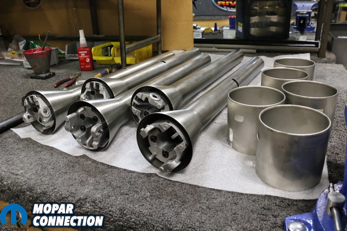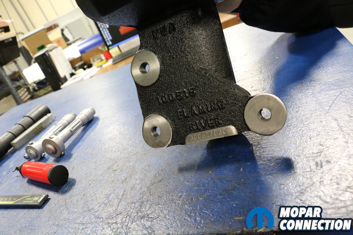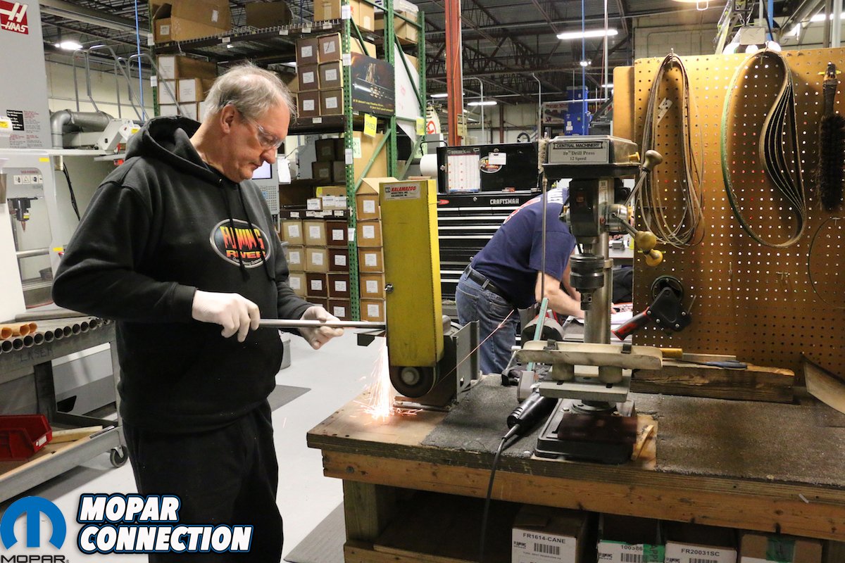 While exploring the facility, we saw numerous multi-axis mills and lathes that were producing anything from one-piece billet turn signal levers, assembly nuts, remote reservoirs, steering shafts and more. As we made our way to the side of the shop, we found ourselves standing in front of a couple garage doors, a rack and their current project car, a 1951 Ford Crestliner. Although its not a Mopar, it is still exciting to see the custom work they have done to the Ford. A couple bays beside it rested an alignment rack, which they use a lot during vigorous testing of new products. John explained, “We have multiple rack-and-pinion kits and having an alignment rack here allows us to measure multiple metrics like bump steer for ourselves and not rely on someone else’s data. We like to control as much of the R&D that we can in house.” We can see where the quality and performance of FR comes from.