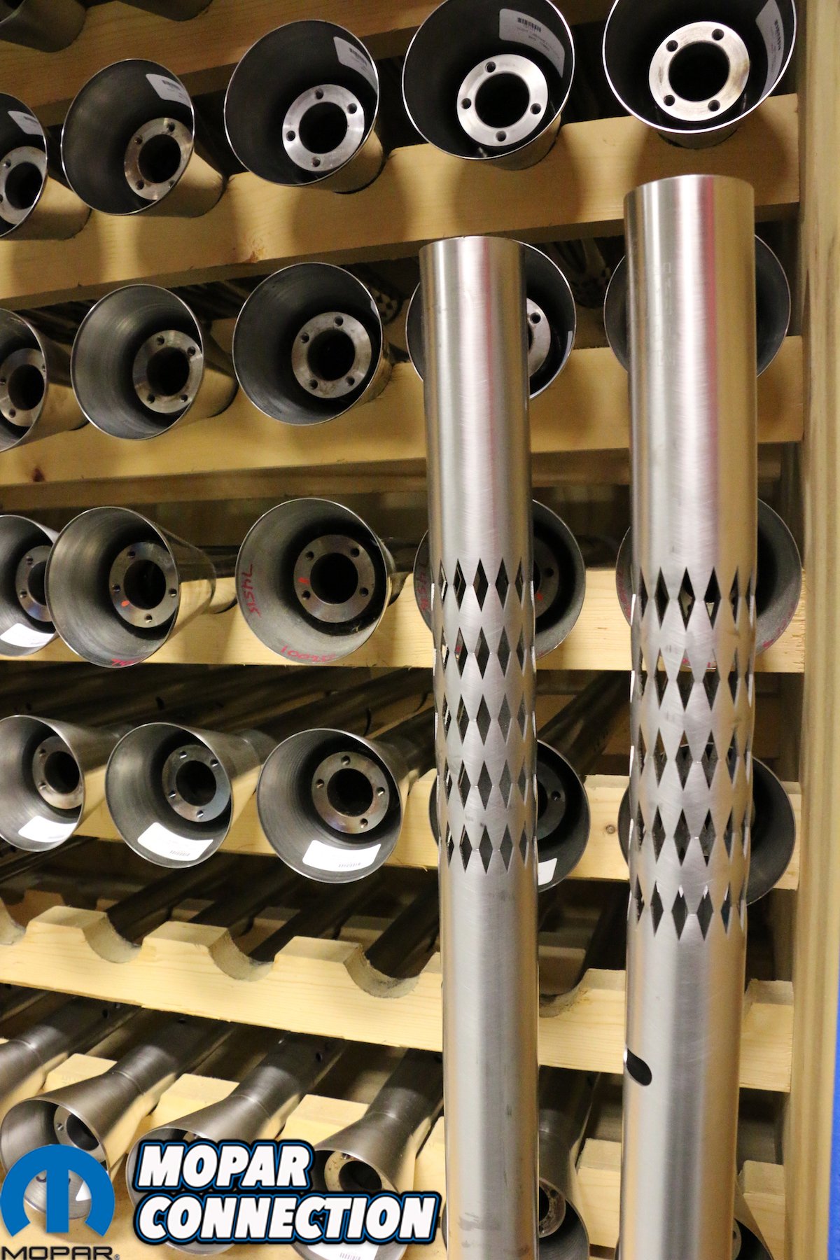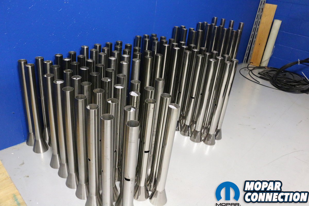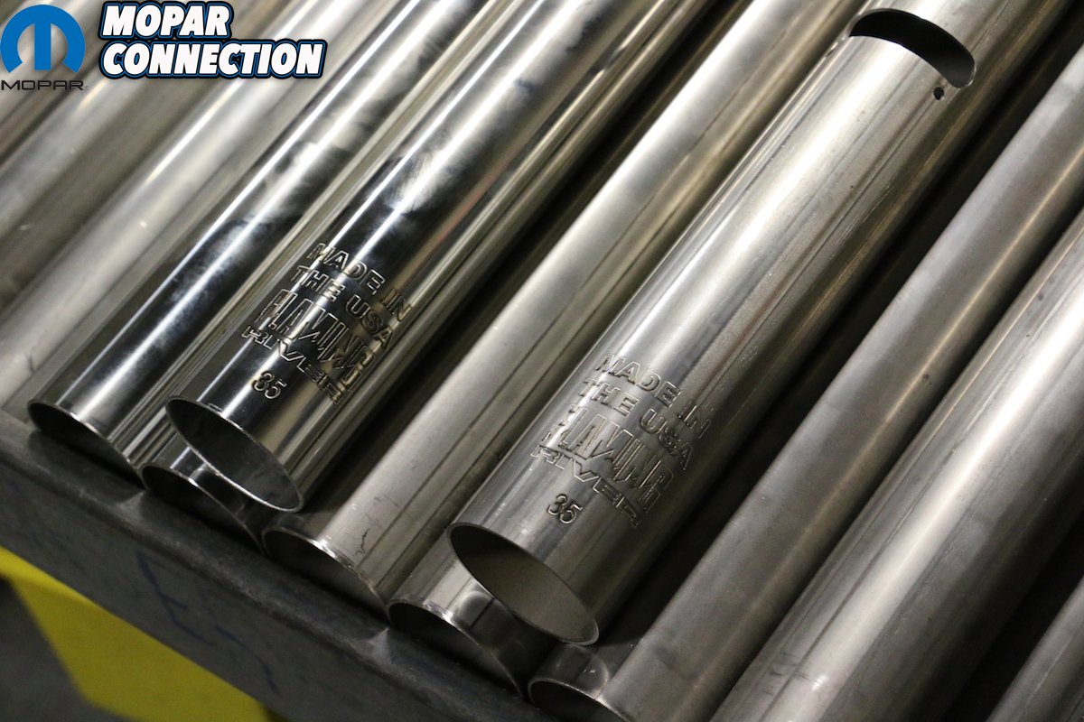 “Running a bead of weld by hand on the outside of a round tube is difficult for even the best welder, but with our robotic arms and rotating tables they will run a perfect bead every time day in and day out without the worry of human error,” stated Mike. The finished tubes covered the floor behind the welding centers. A few of these tubes looked a bit different than the ones we saw earlier. We asked why these had multiple diamond shaped cutouts. Mike explained, “Those are our collapsible tubes. If you happen to ever be in a wreck that tube will collapse on impact 4-inches for added safety. Any of our steering columns can be ordered with the collapsible option.”