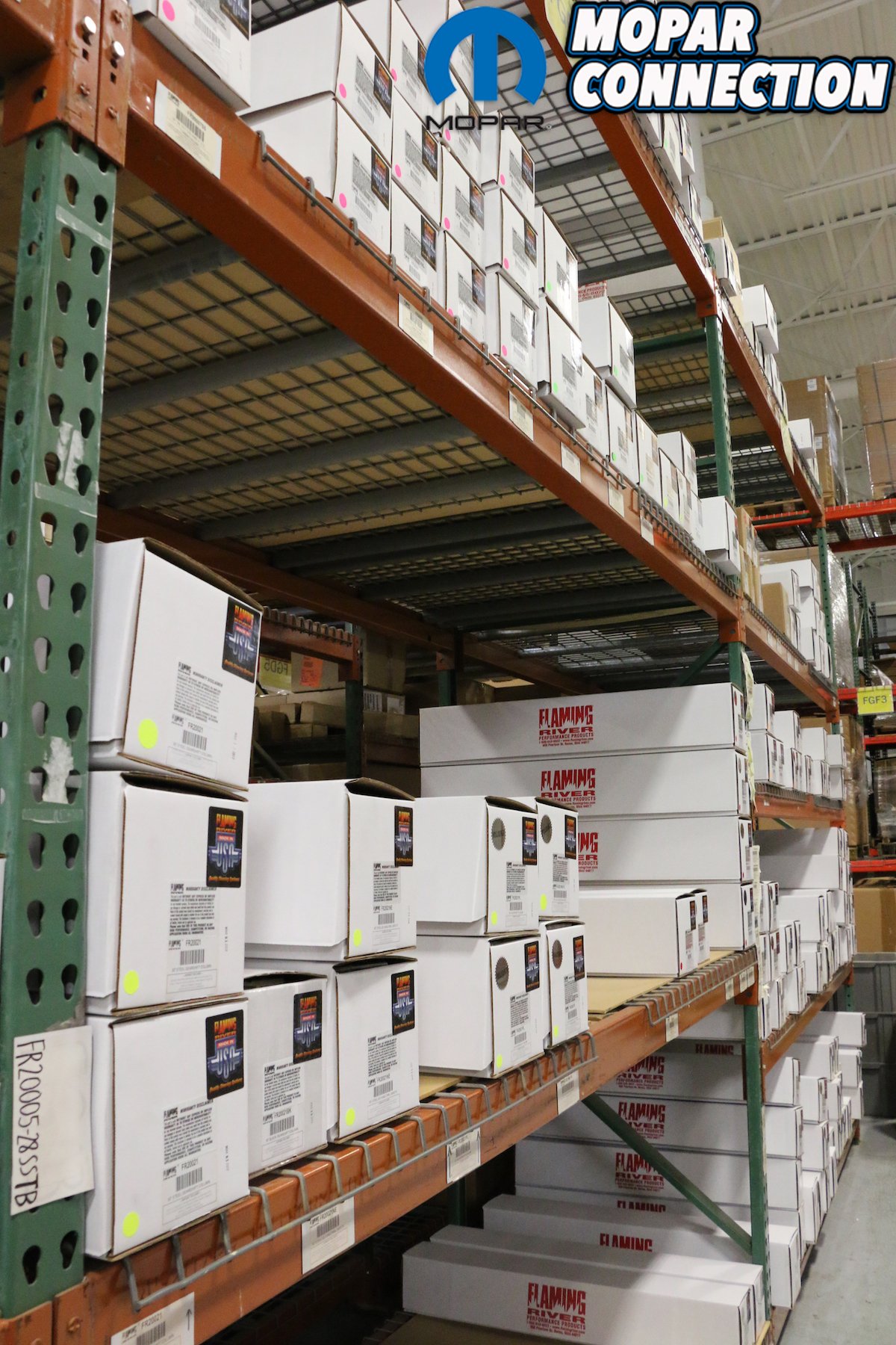 Above: Shelves of parts ready to be picked and shipped.