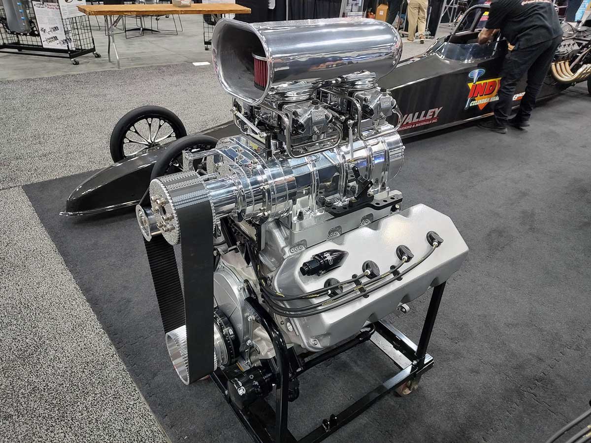 Above: Indy developed a supercharged 572 race wedge engine for the bracket and quick classes. The high-compression wedge runs on alcohol and is designed to create power between 1200 to 1500 horsepower.