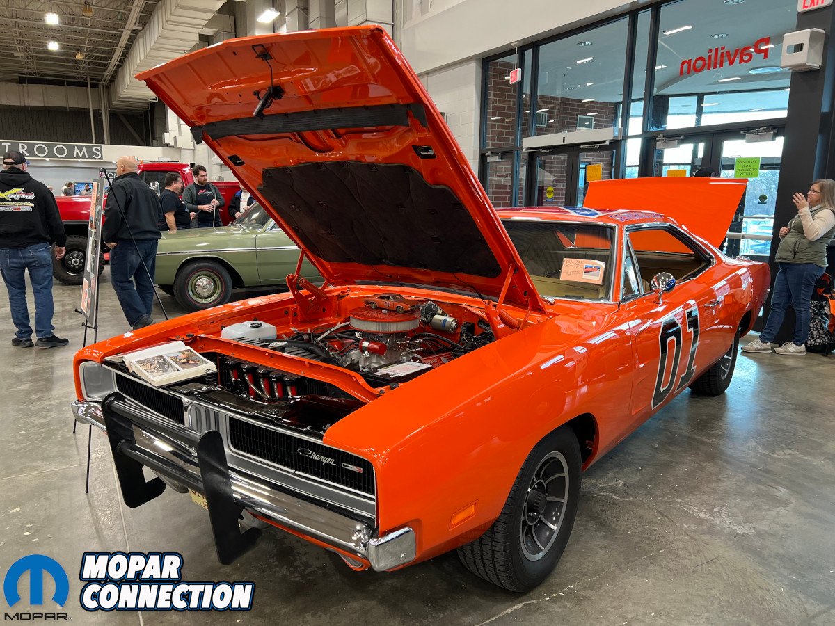 Pick list in hand, we started on what’s become our standard path, first stopping to see a few feature cars at the front doors. A blue 1969 Dodge Charger Daytona clone showcased its 505 stroker, police lights, and a General Lee-esque front push bar. The General himself was next to it, this one looking to be an extremely faithful rendition of everybody’s favorite Duke family member.