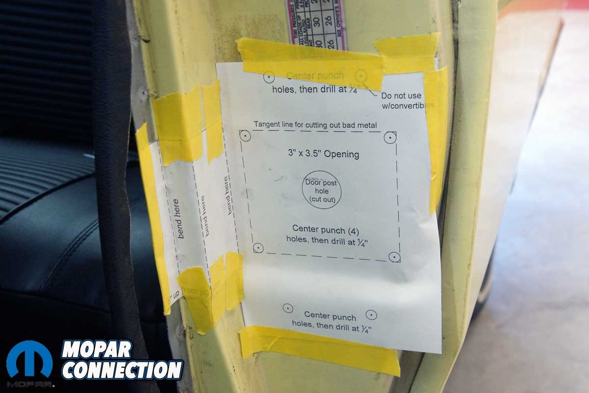 Classic Industries has driver- and passenger-side repair plates for the two-door A-Bodies (part nos. MP41268 – driver or MP41269 – passenger) to fix the damage. Each 0.062-inch plate is designed to fit in the weakened area and restore the door jamb’s integrity while reinforcing the support area for the post.